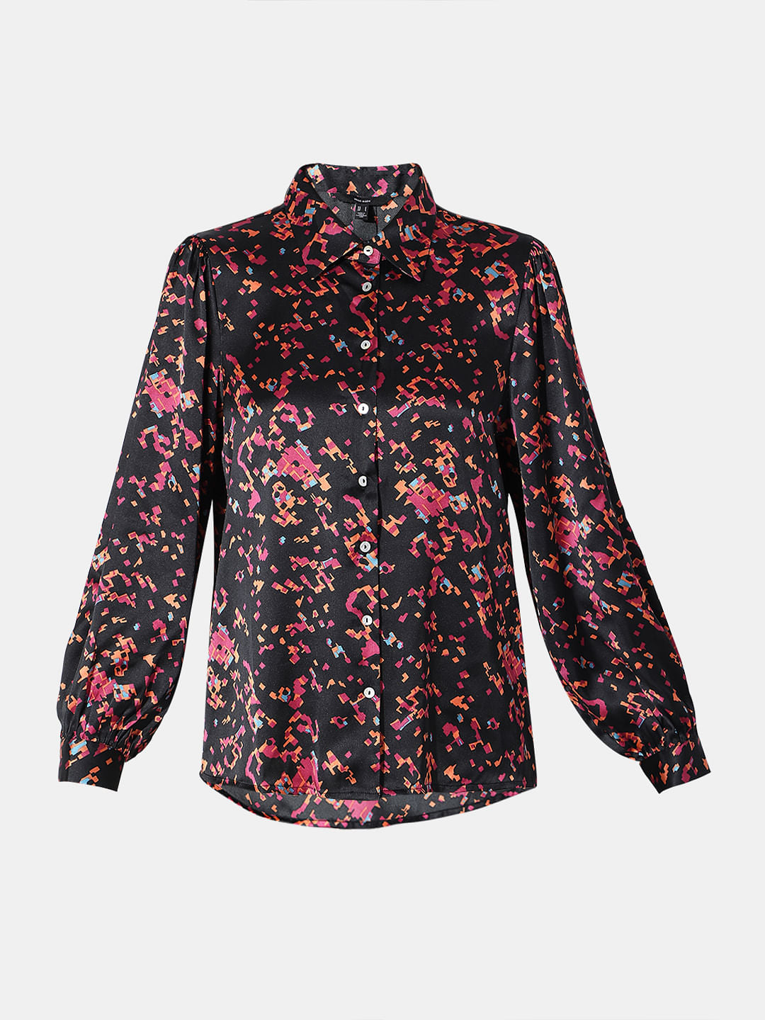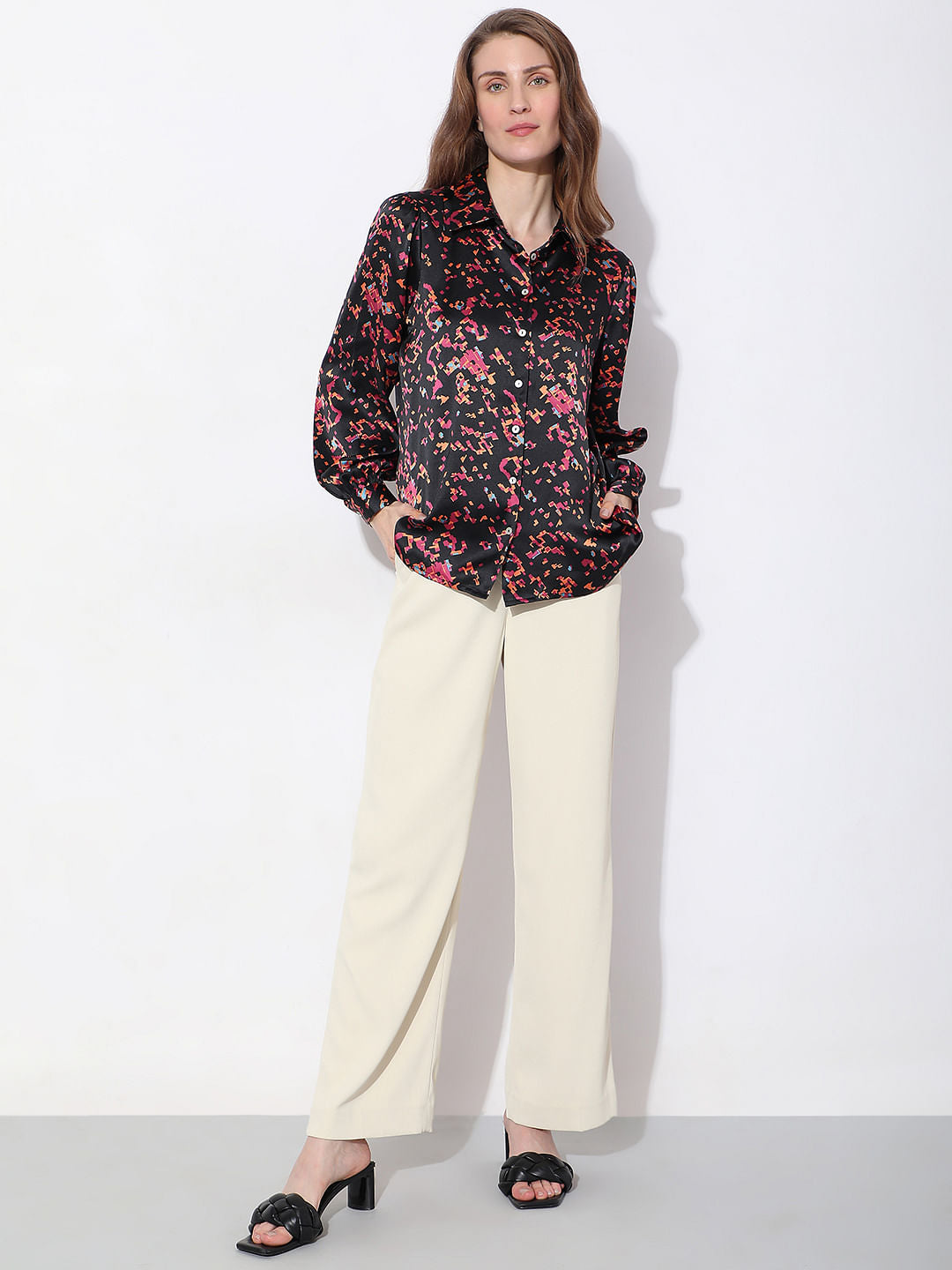 Women's black abstract print full sleeves shirt. Style it with wide-leg jeans for a casual look or trousers for a more formal attire.
