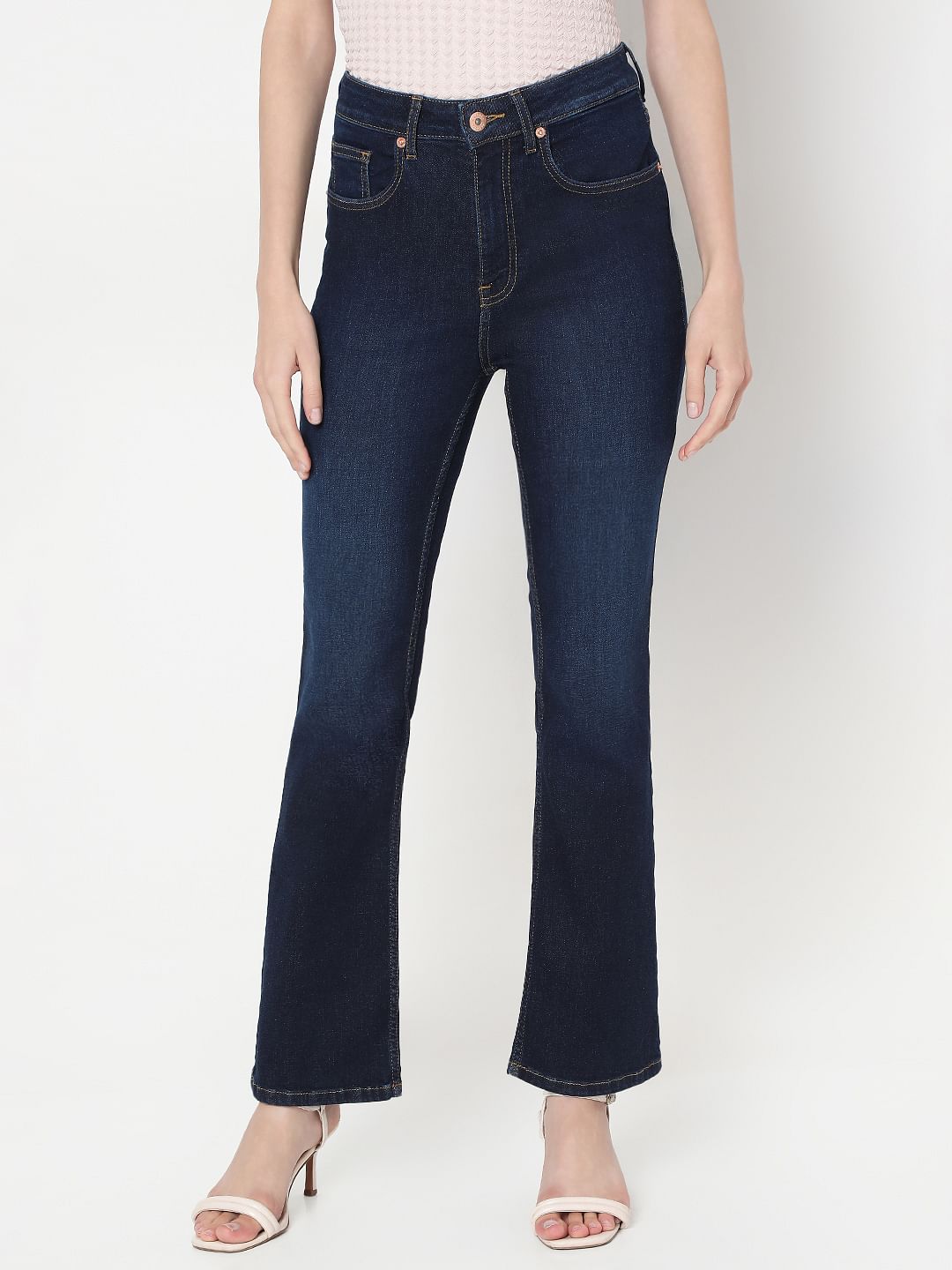 DARK BLUE HIGH RISE BOOTCUT JEANS