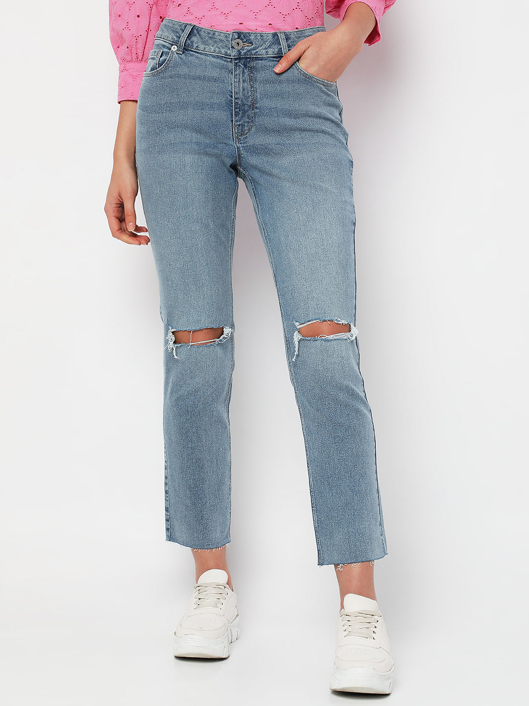 Blue Mid Rise Distressed Jade Straight Fit Jeans Sale price₹1,999 Regular price₹3,999 50%OFF