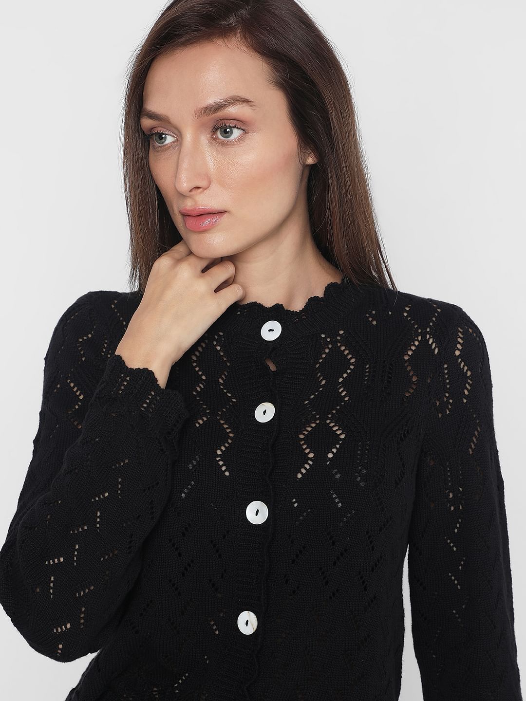 Black Pointelle Cardigan Sale price₹2,029 Regular price₹2,899 30%OFF