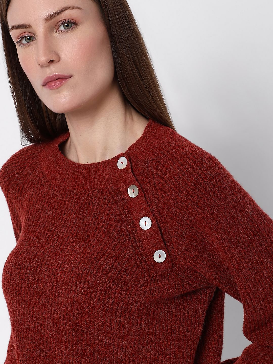 Maroon O-Neck Button Detail Pullover Sale price₹2,099 Regular price₹2,999 30%OFF