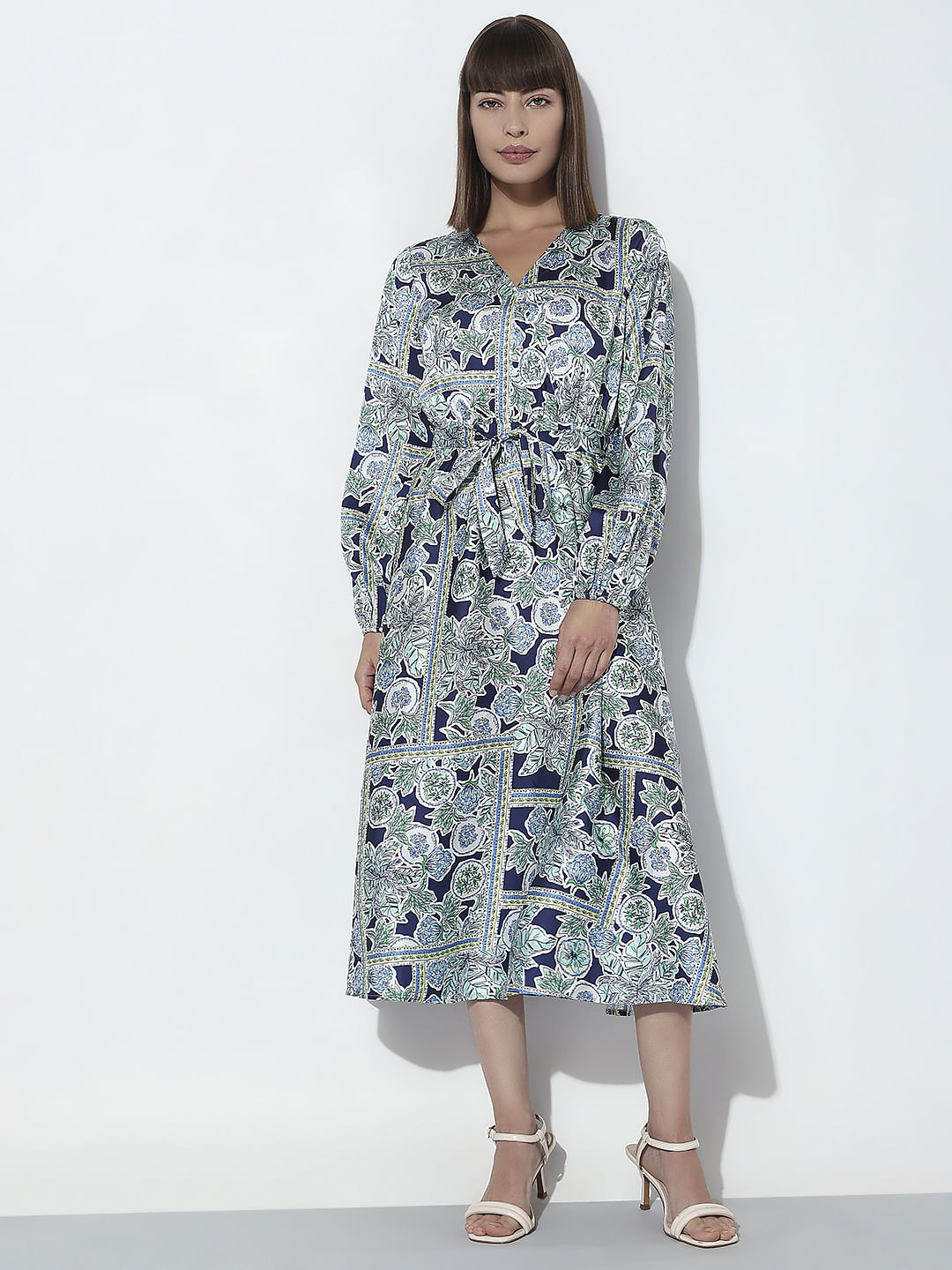 Navy Blue Printed Midaxi Dress Sale price₹3,299 Regular price₹5,499 40%OFF