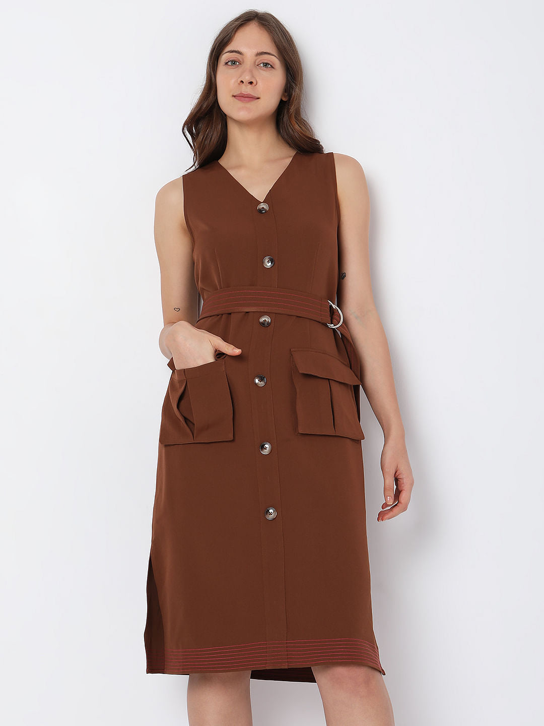 Brown V-Neck Midi Dress Sale price₹2,149 Regular price₹4,299 50%OFF