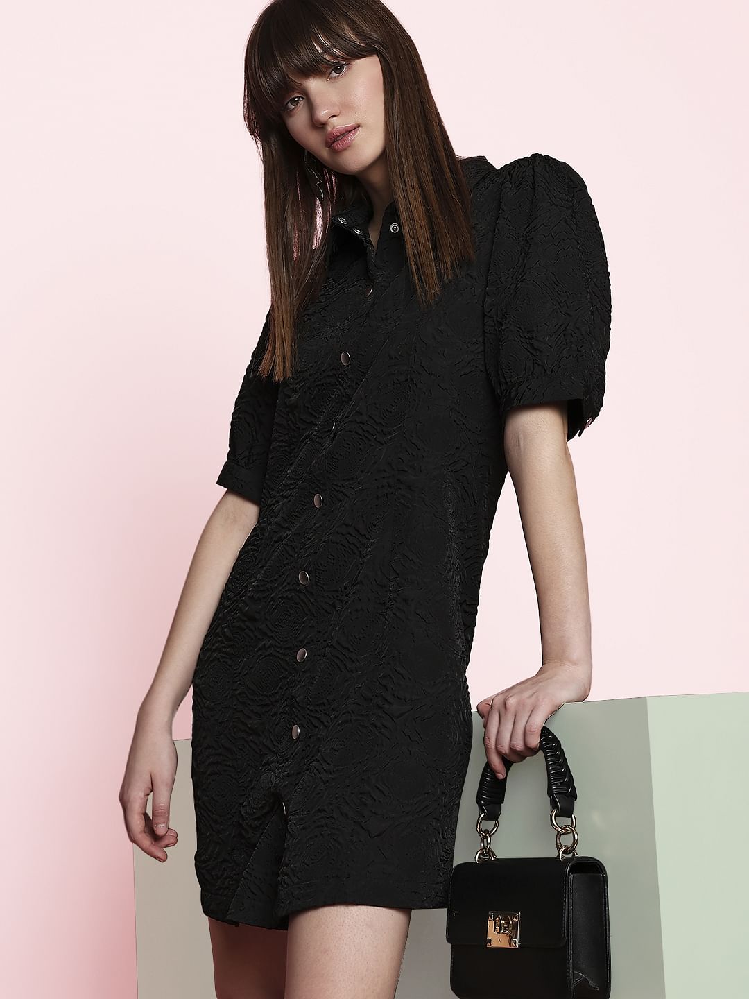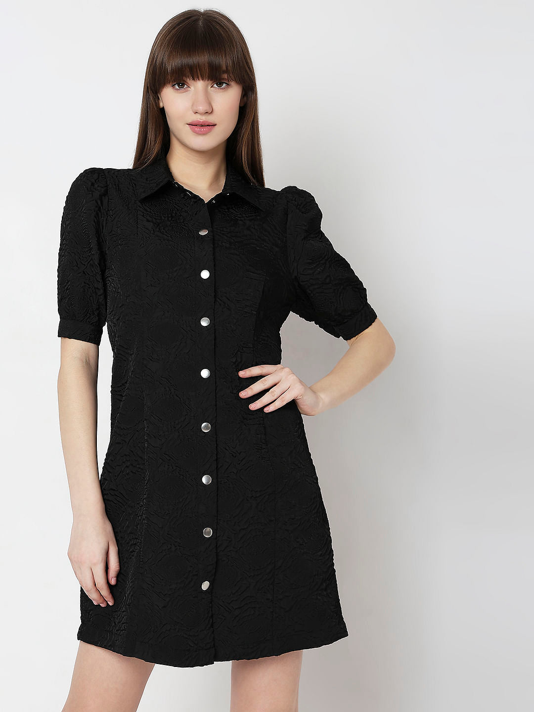 Black Textured Puff Sleeves Mini Dress Sale price₹1,899 Regular price₹3,799 50%OFF