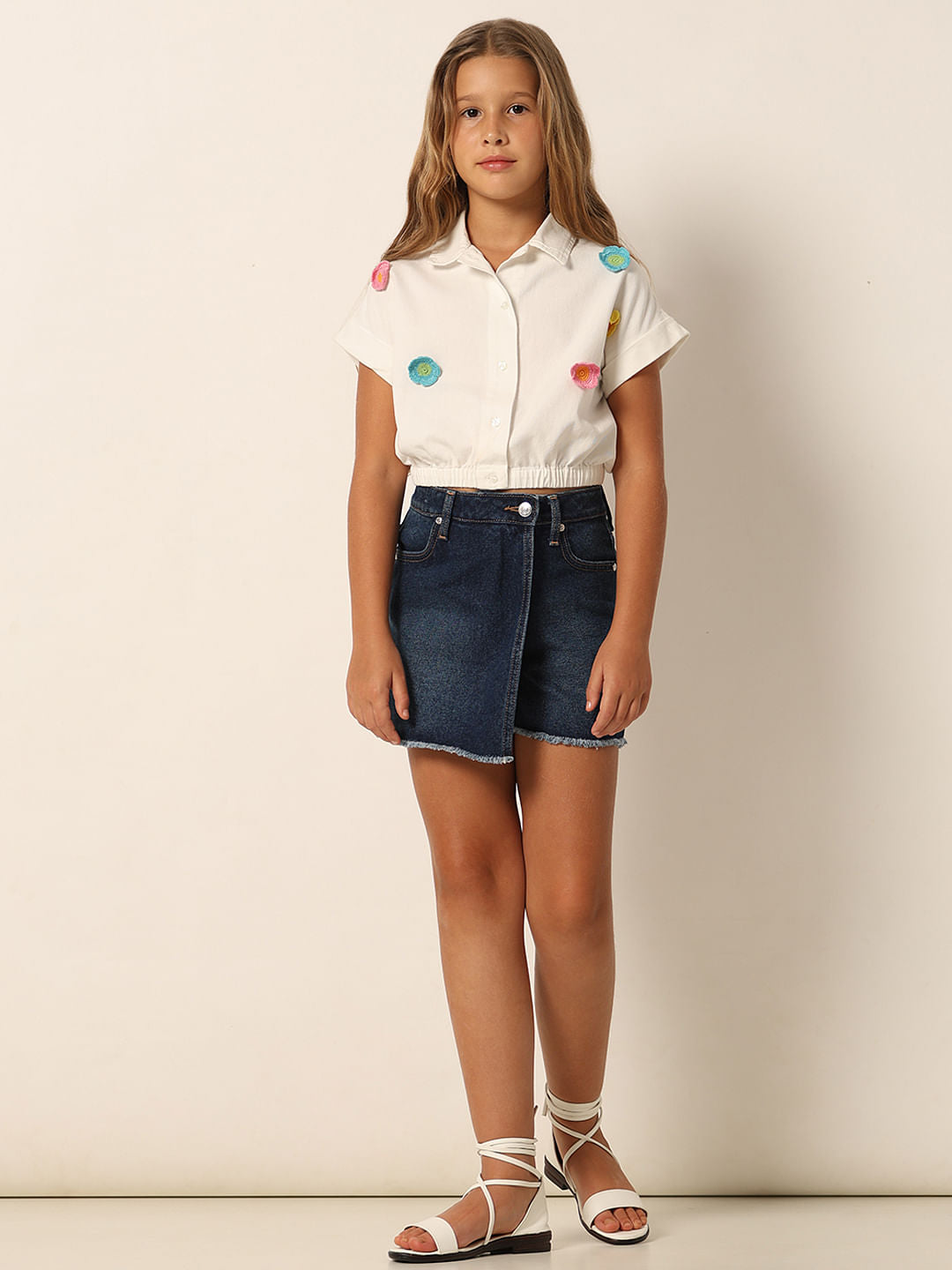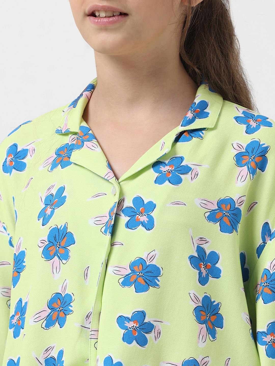 Girls White Floral Co-Ord Set Shirt