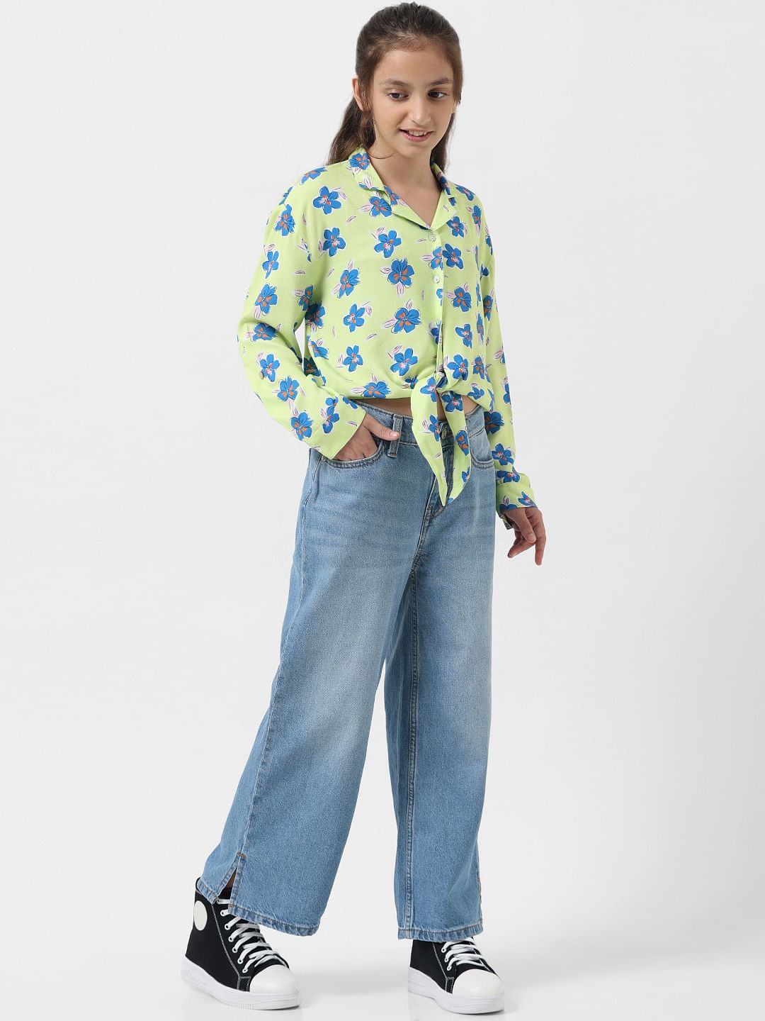 Girls Green Printed Twisted Knot Shirt Sale price₹989 Regular price₹1,799 45%OFF