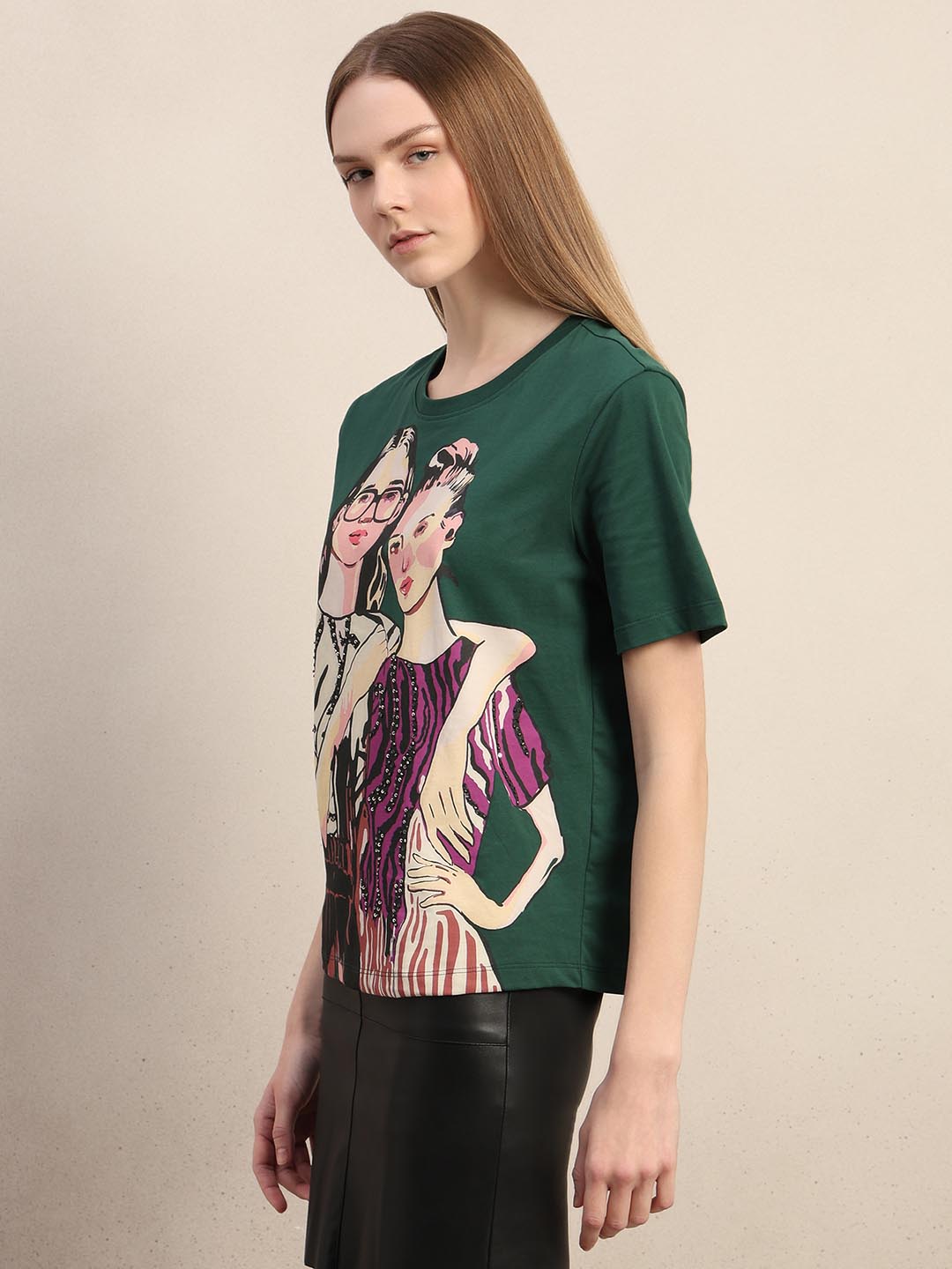 Green Printed Cotton T-shirt
