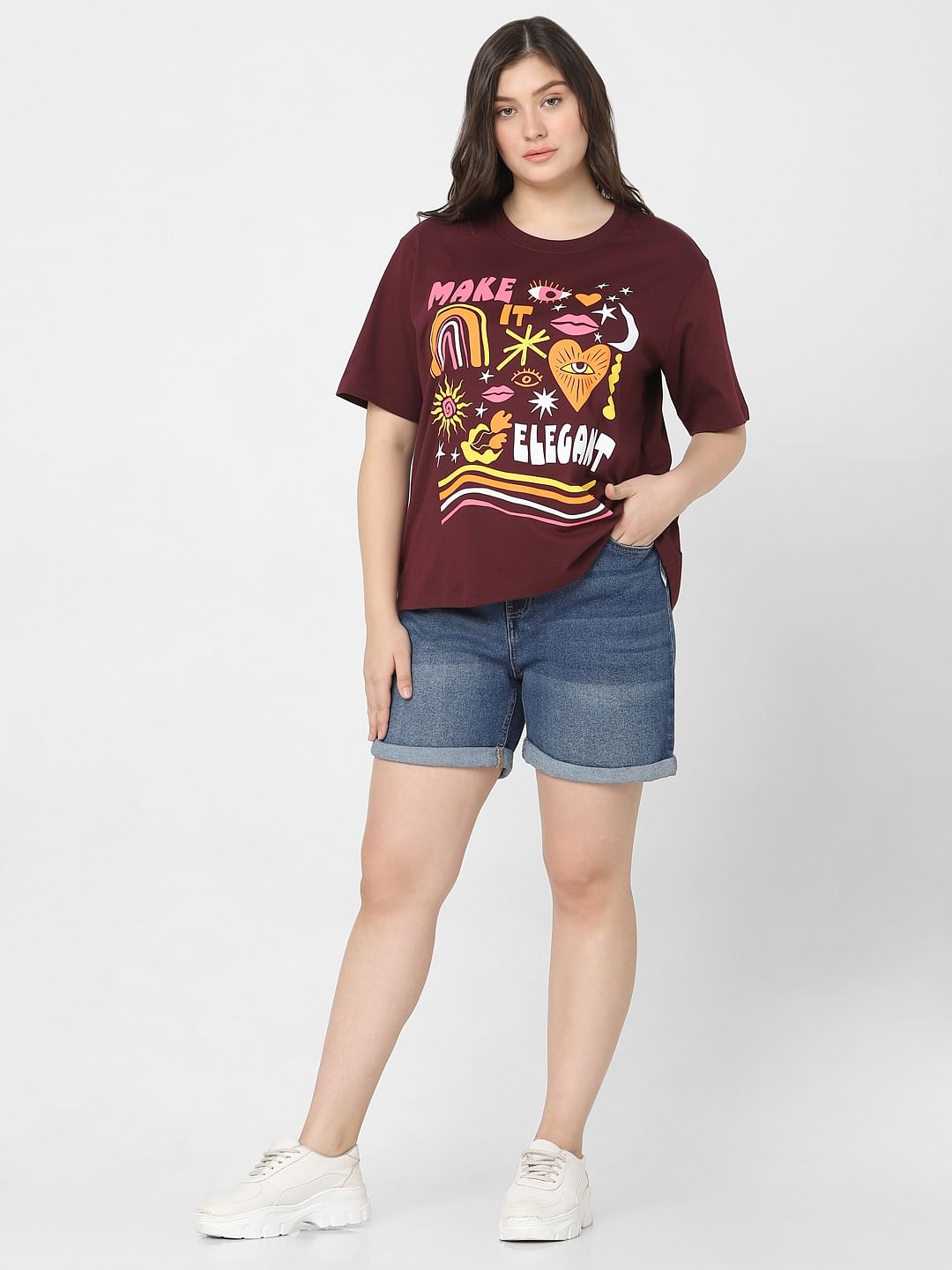 Curve Beige Printed Cotton T-Shirt Sale price₹824 Regular price₹1,499 45%OFF