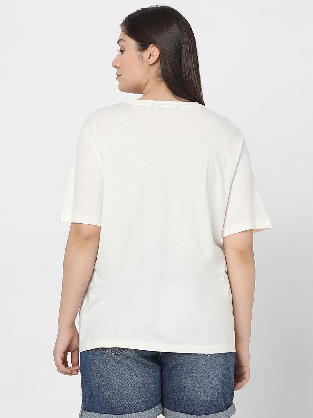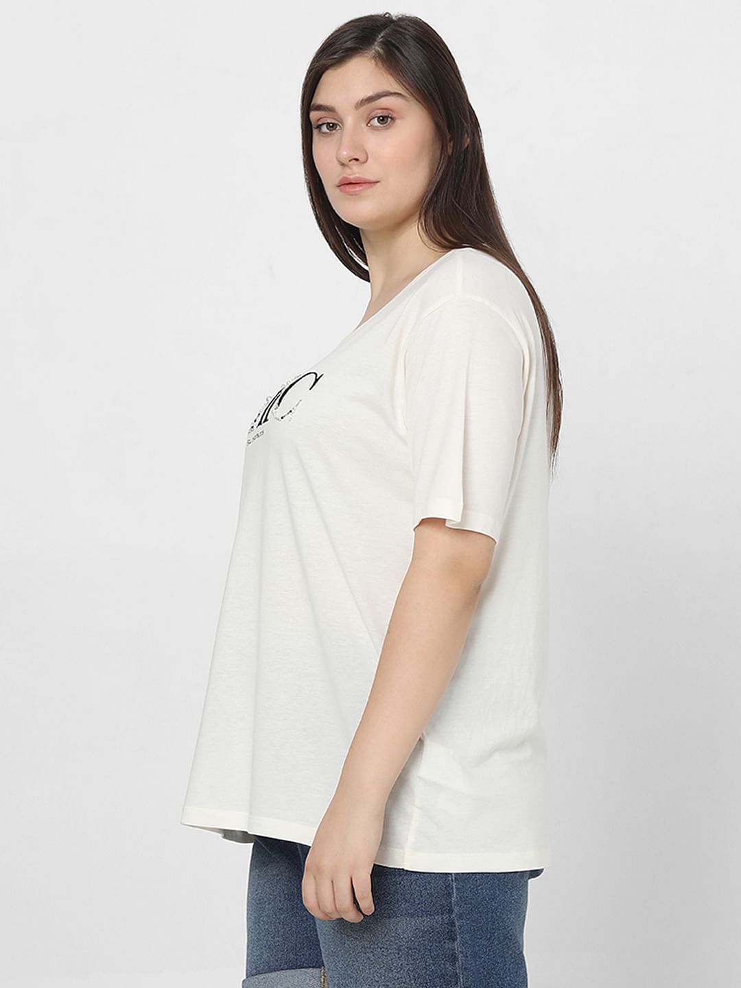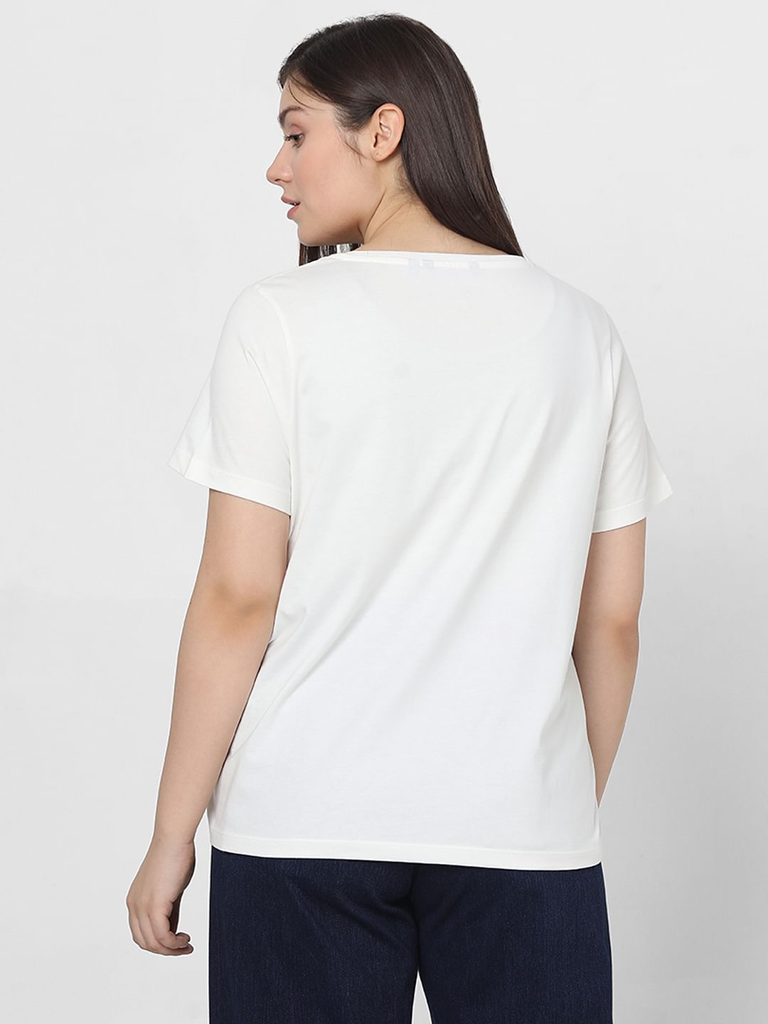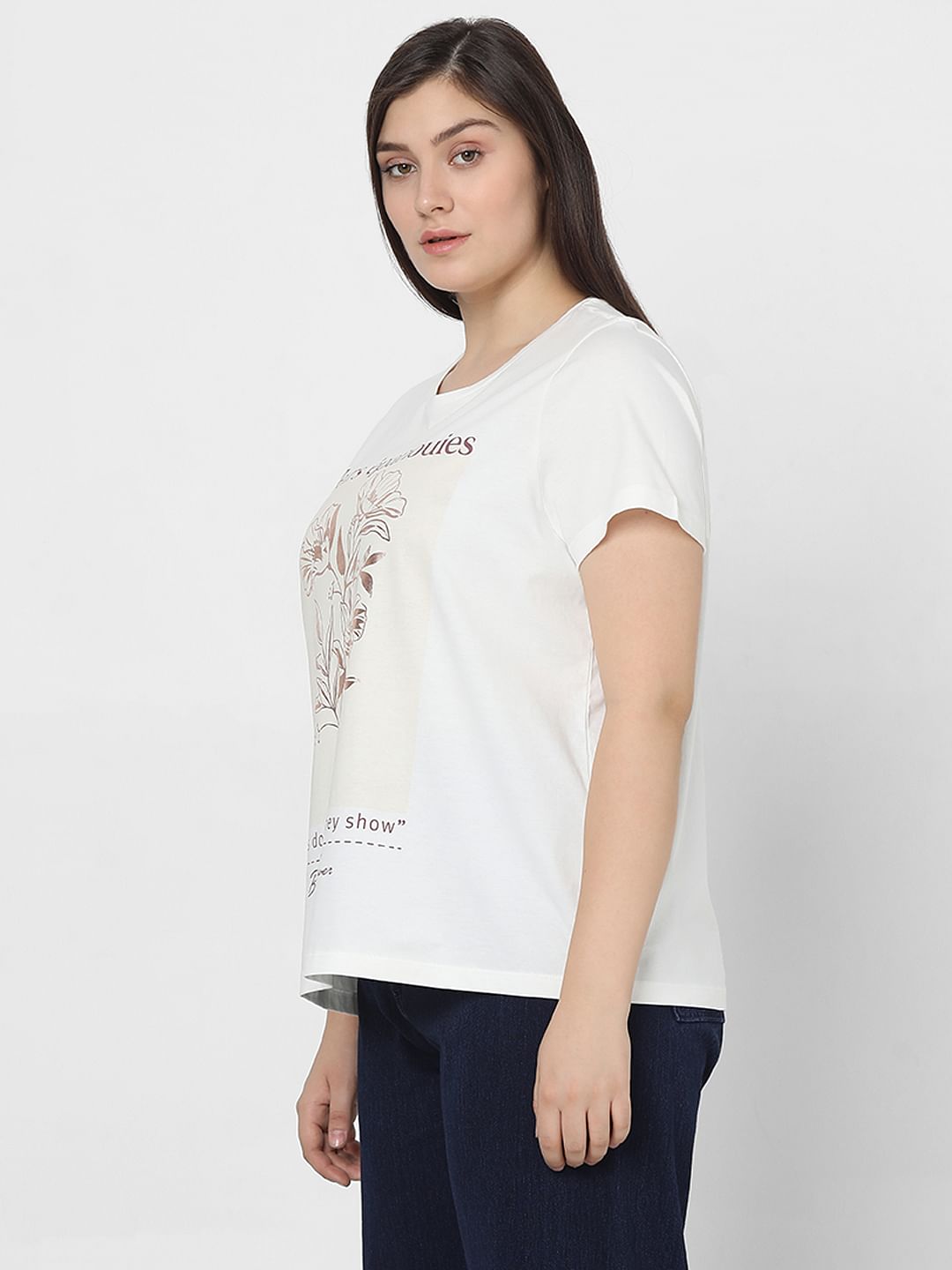 Curve White Printed Cotton T-Shirt