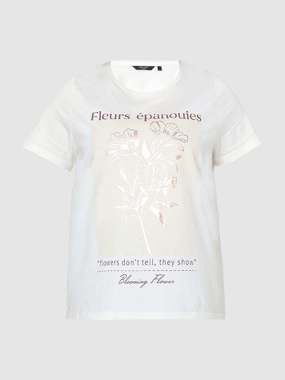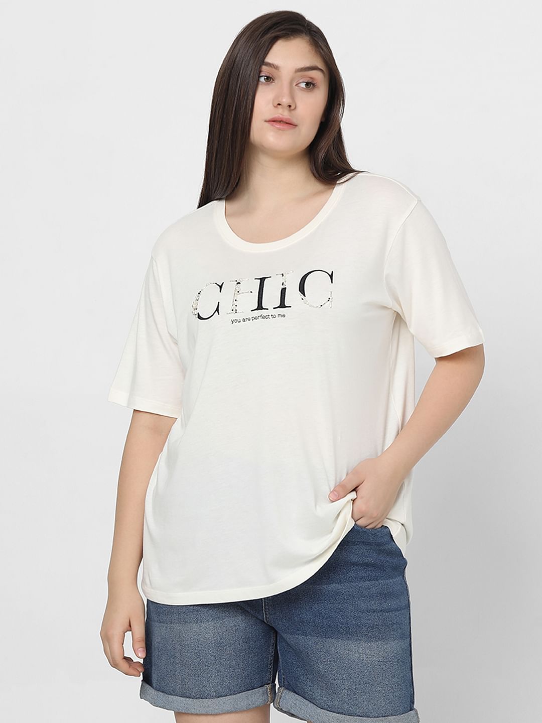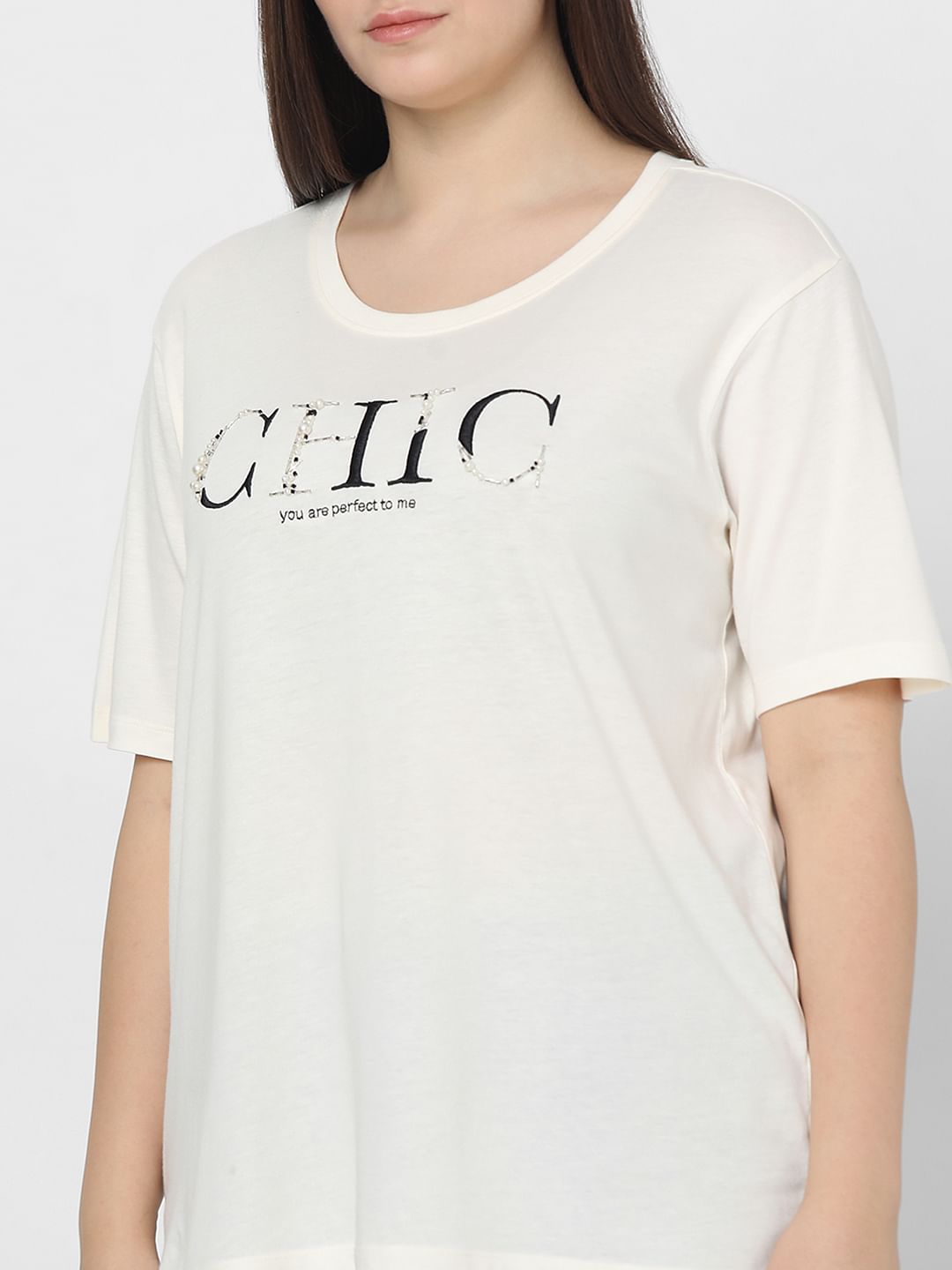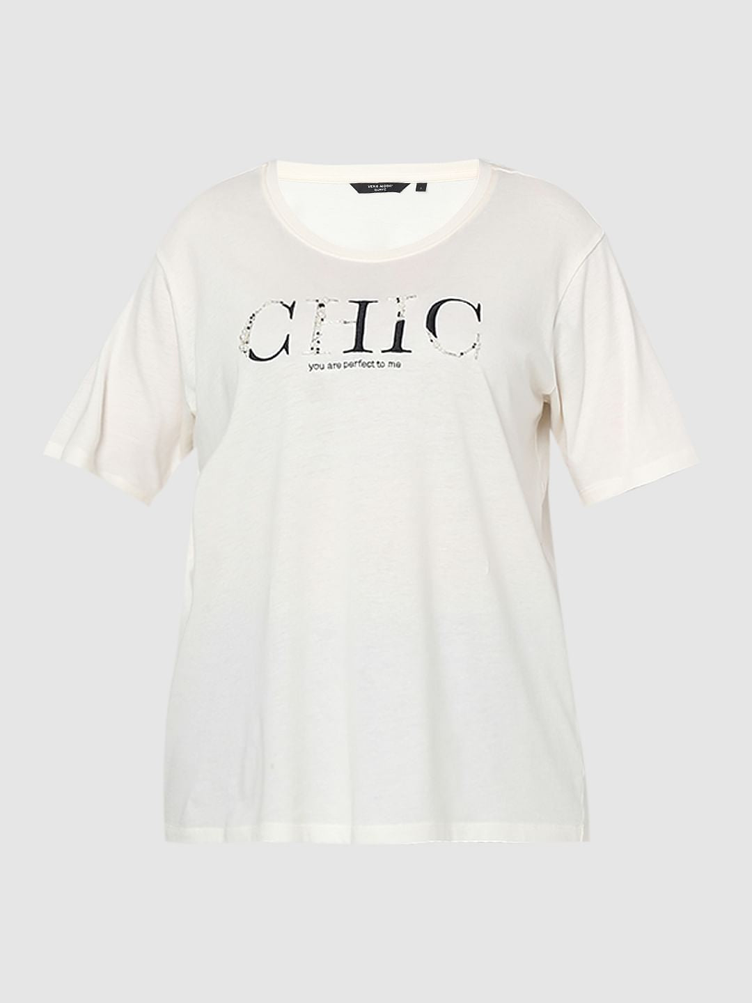 Curve White Printed Cotton T-Shirt