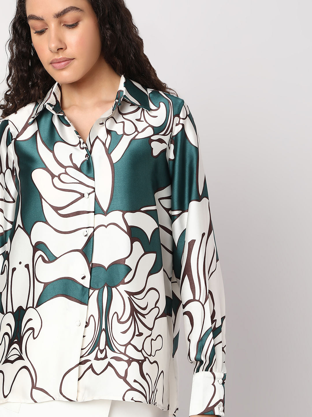 Teal Floral Satin Shirt Sale price₹1,799 Regular price₹2,999 40%OFF