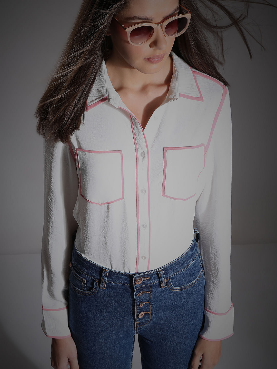 Pink Printed Lace Detail Shirt Sale price₹3,199 Regular price₹3,999 20%OFF