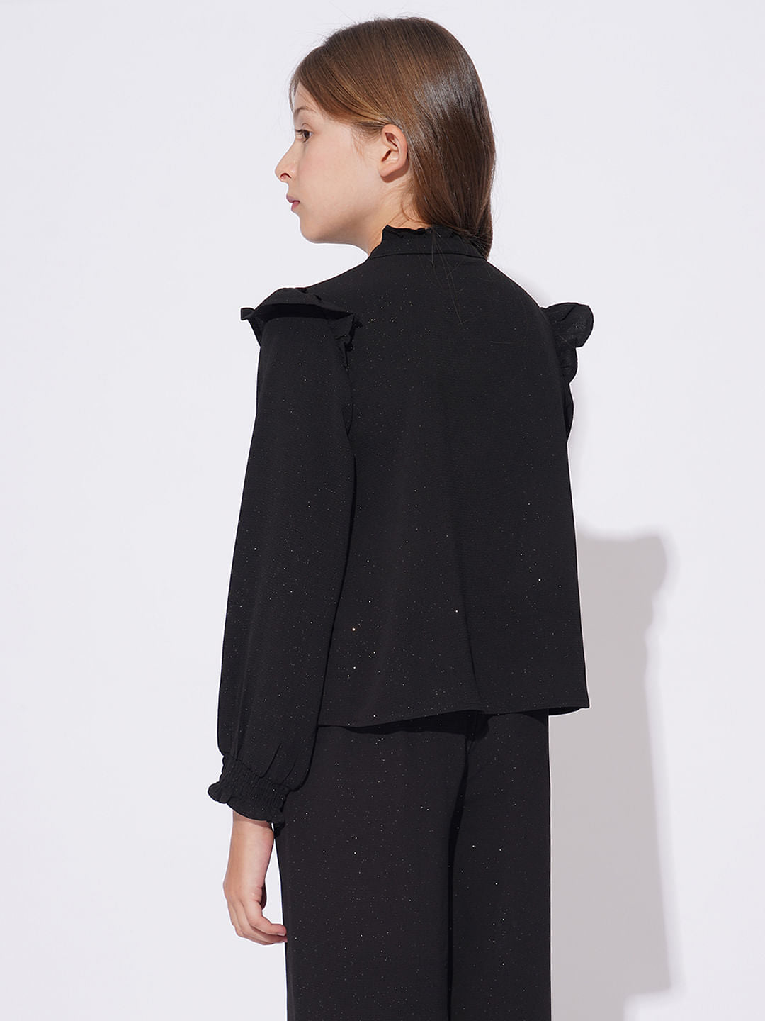 GIRLS BLACK SHIMMER CO-ORD SET SHIRT