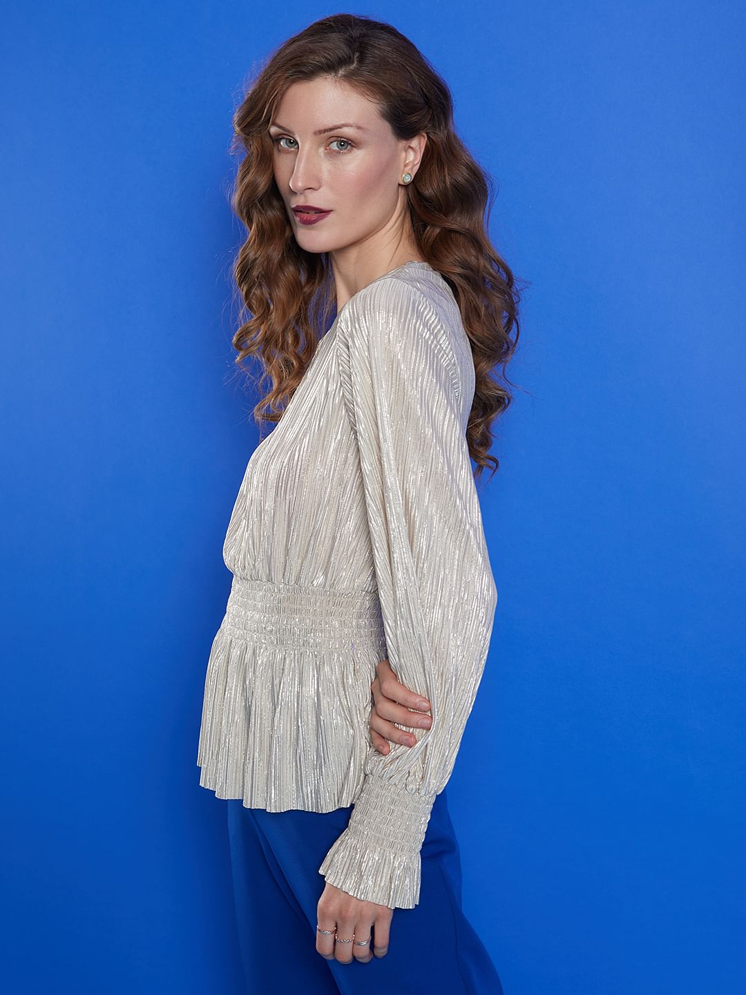 MARQUEE BEIGE PLEATED SHIMMER TOP