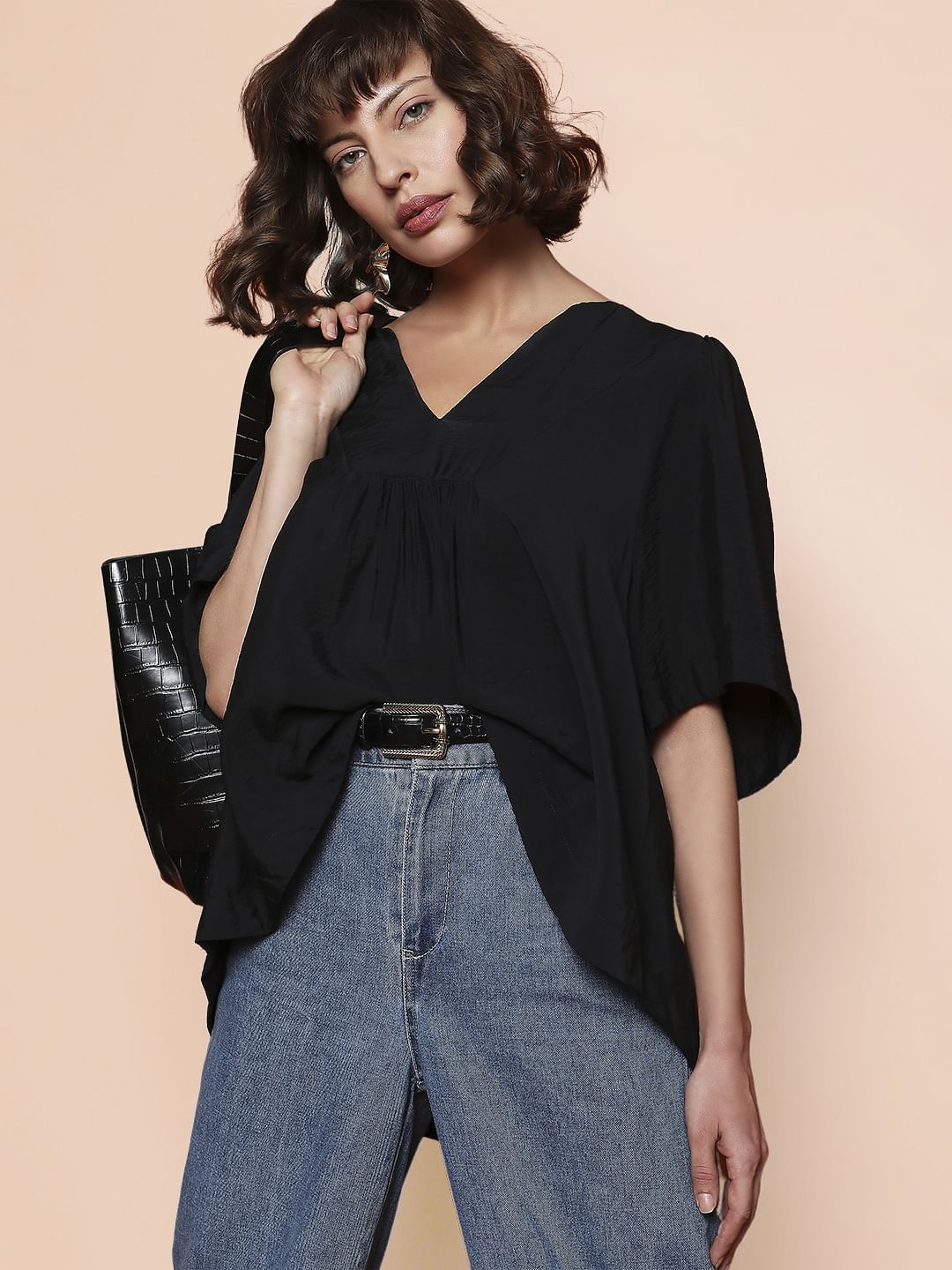 BLACK V-NECK FLARED TOP