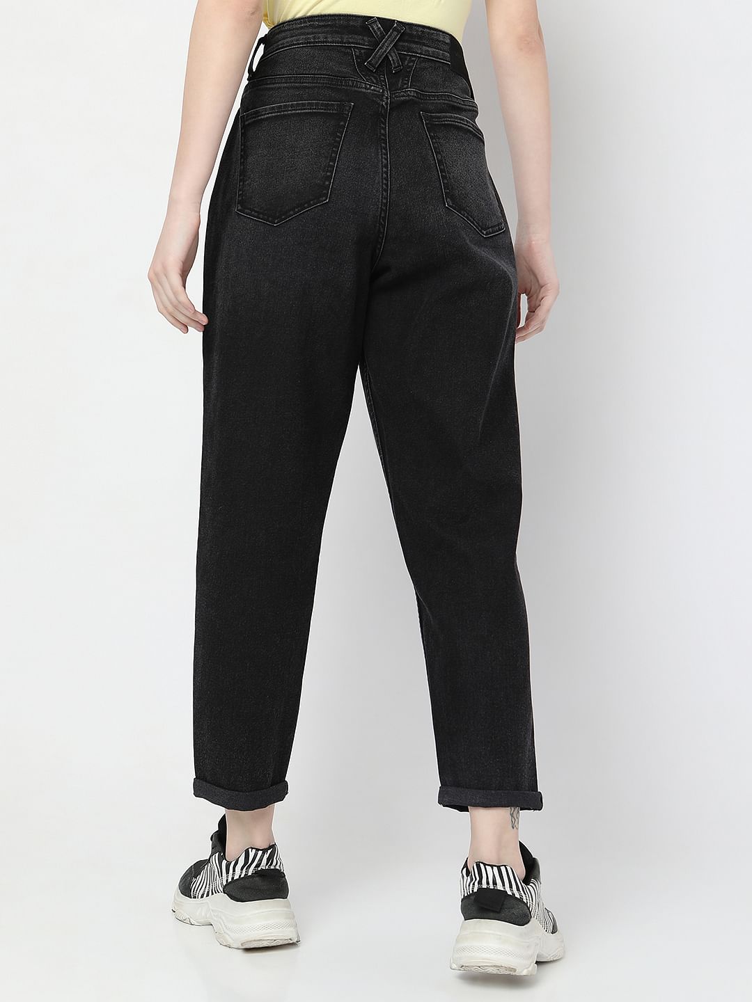 BLACK HIGH RISE GIRLFRIEND FIT JEANS