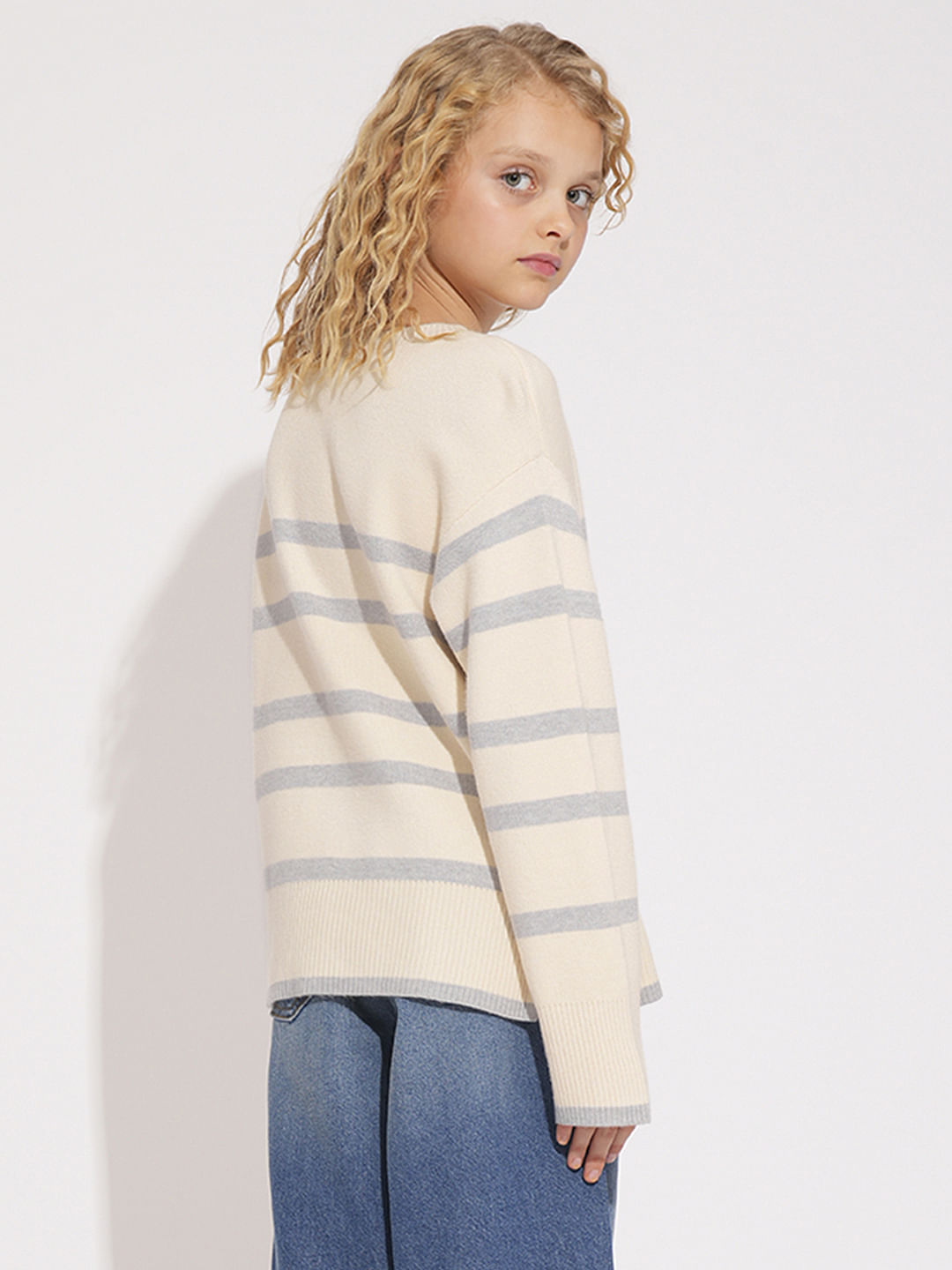 GIRLS BEIGE STRIPED PULLOVER