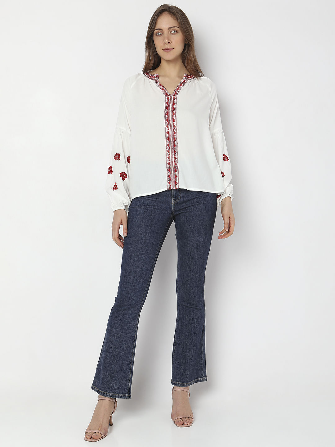 WHITE EMBROIDERED FULL SLEEVES TOP