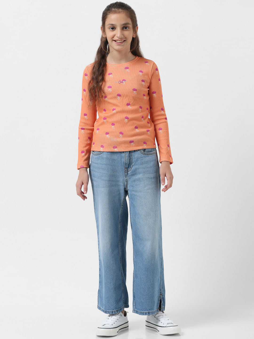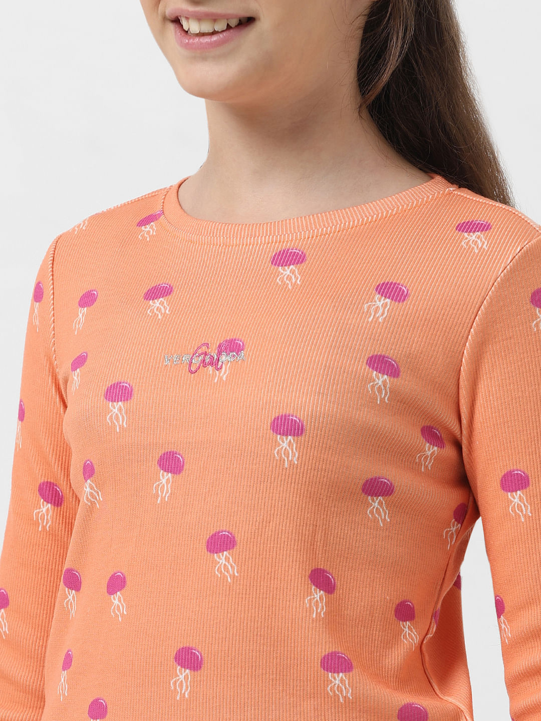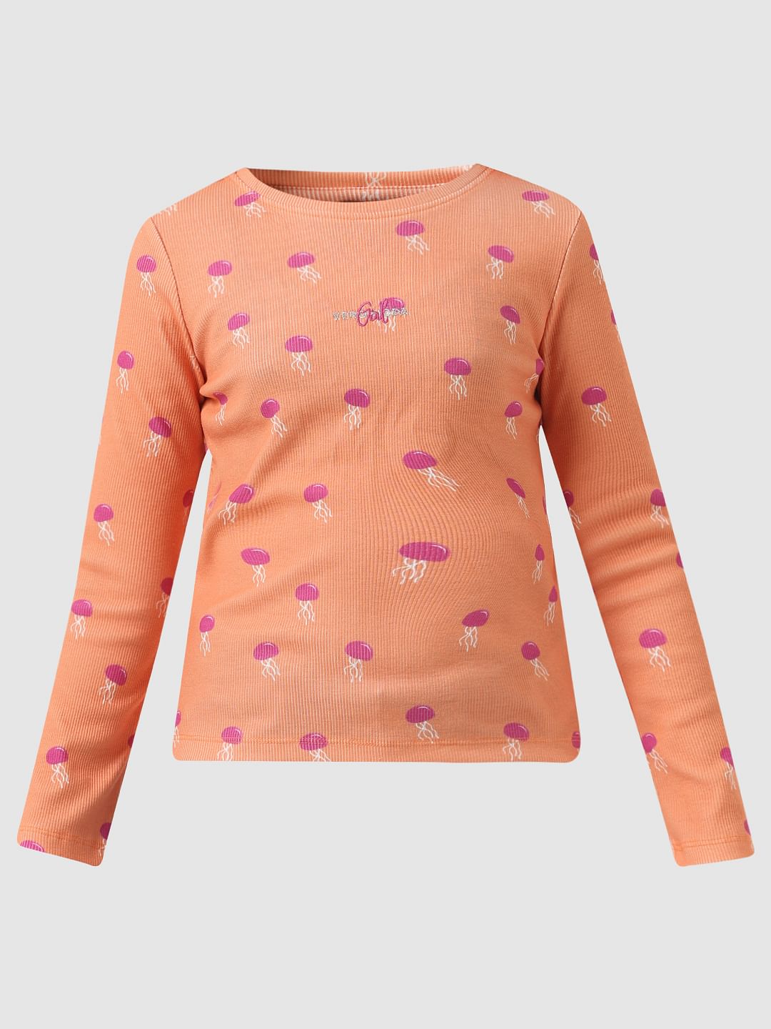 GIRL ORANGE PRINTED RIBBED T-SHIRT