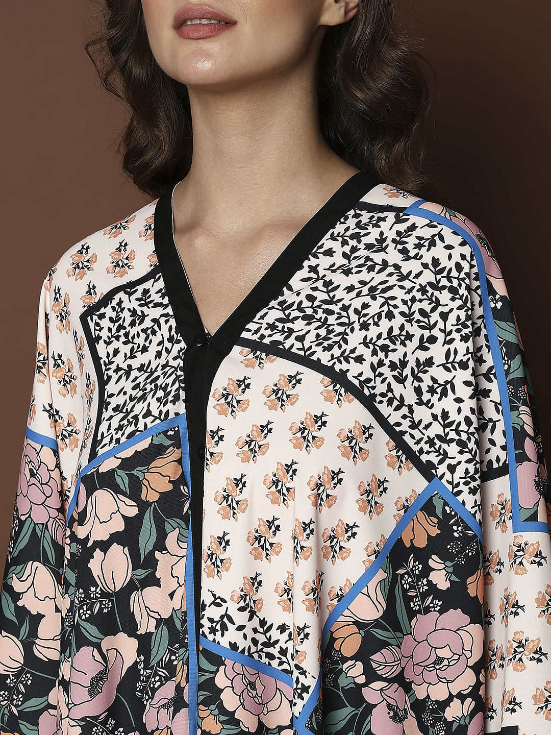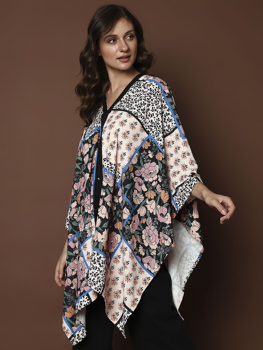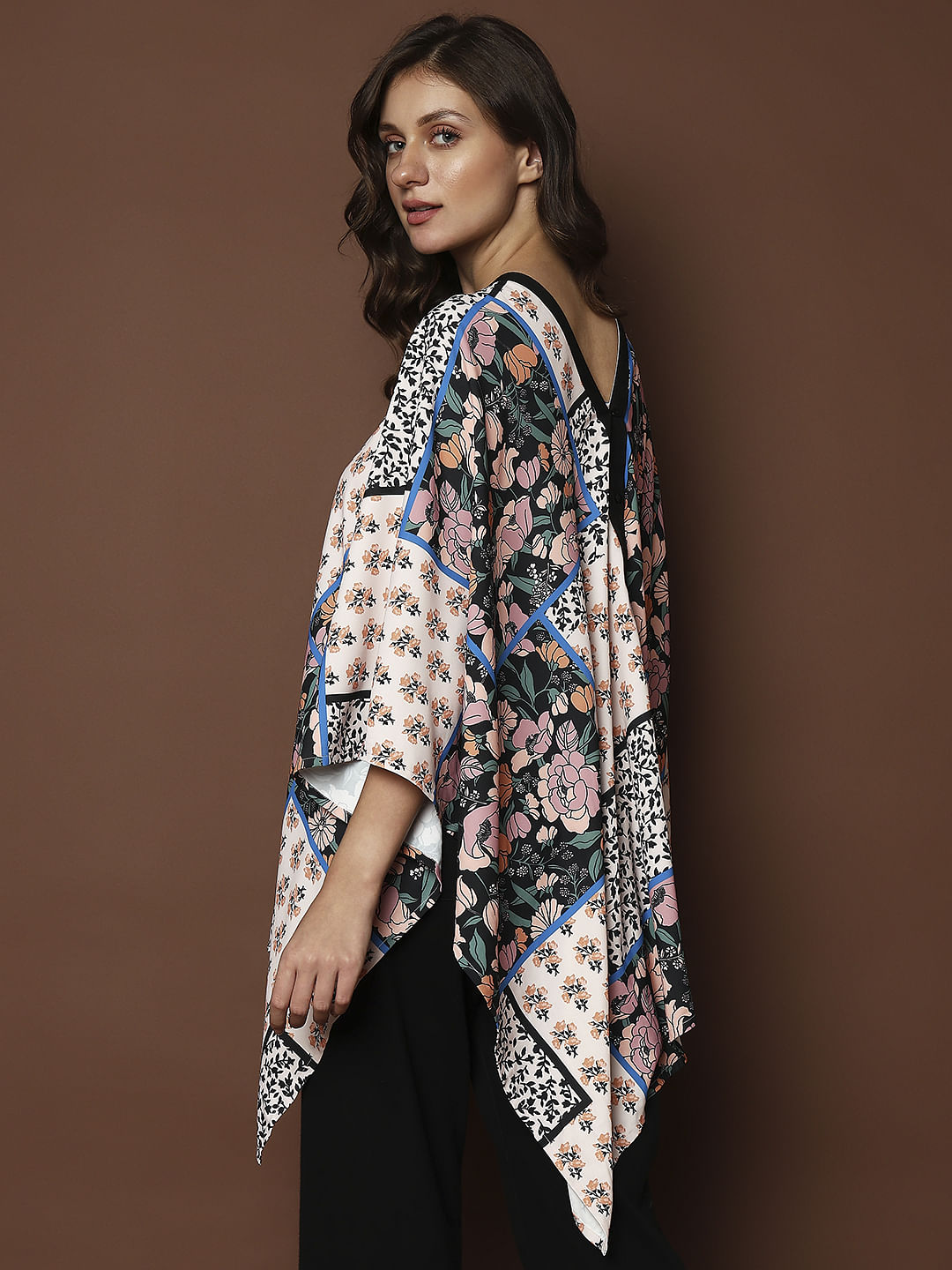 BEIGE PRINTED MULTI-STYLE PONCHO TOP