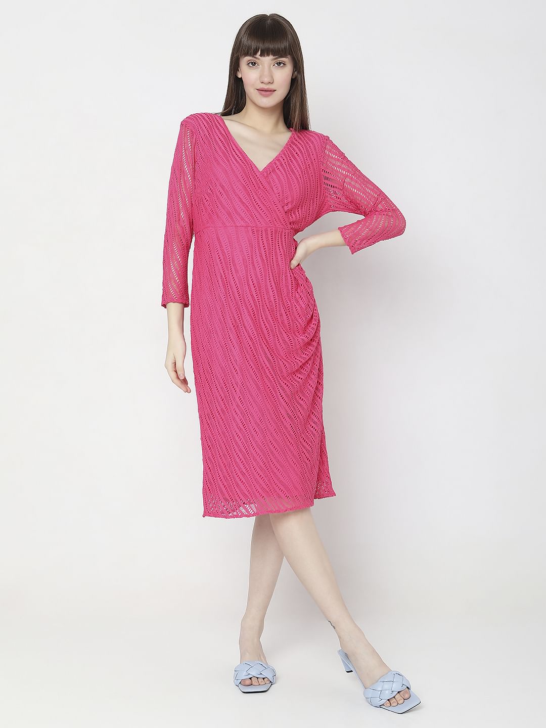 Pink Lace Wrap Midi Dress Sale price₹1,999 MRP Regular price ₹3,999 (50% OFF)