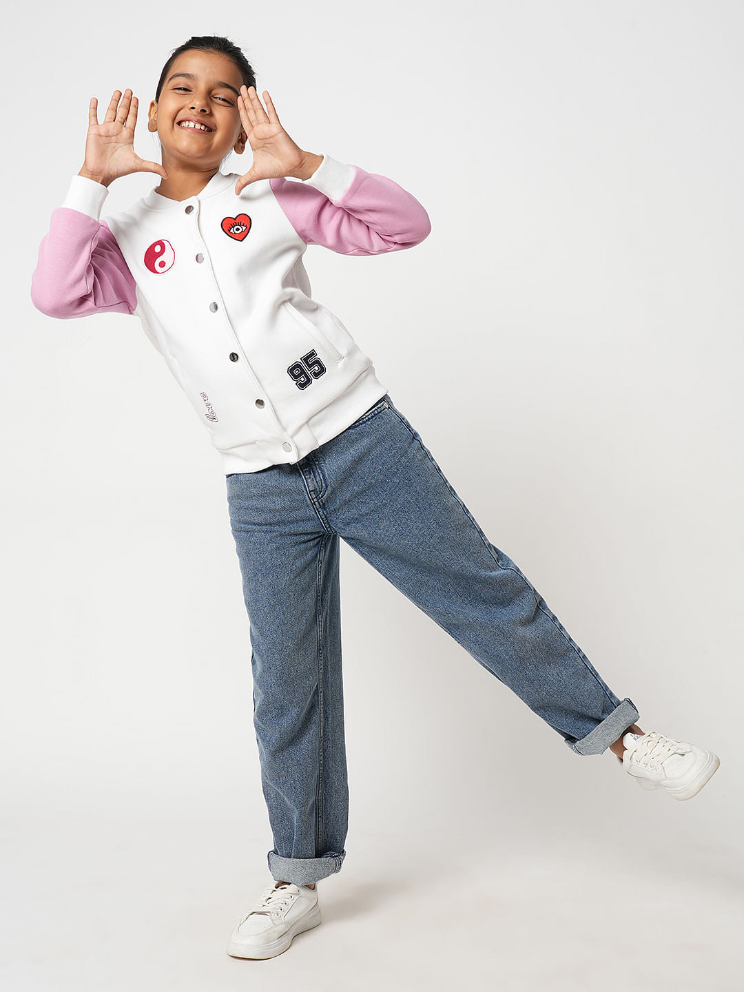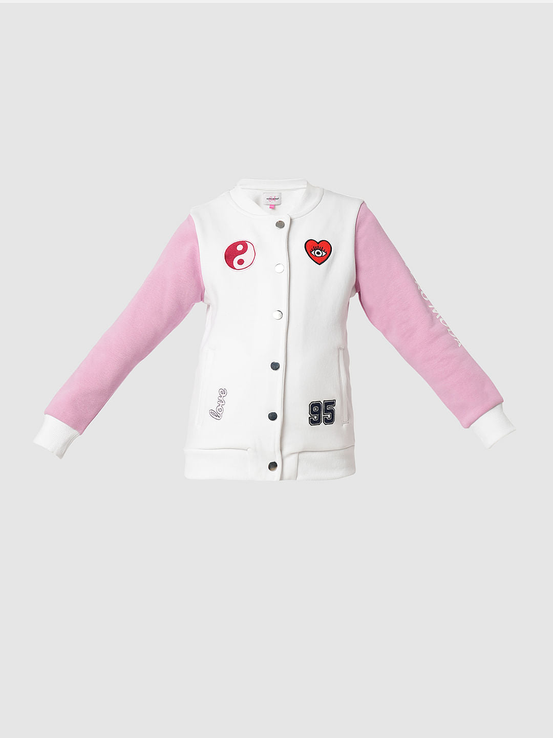 GIRL WHITE COLOURBLOCKED BOMBER JACKET