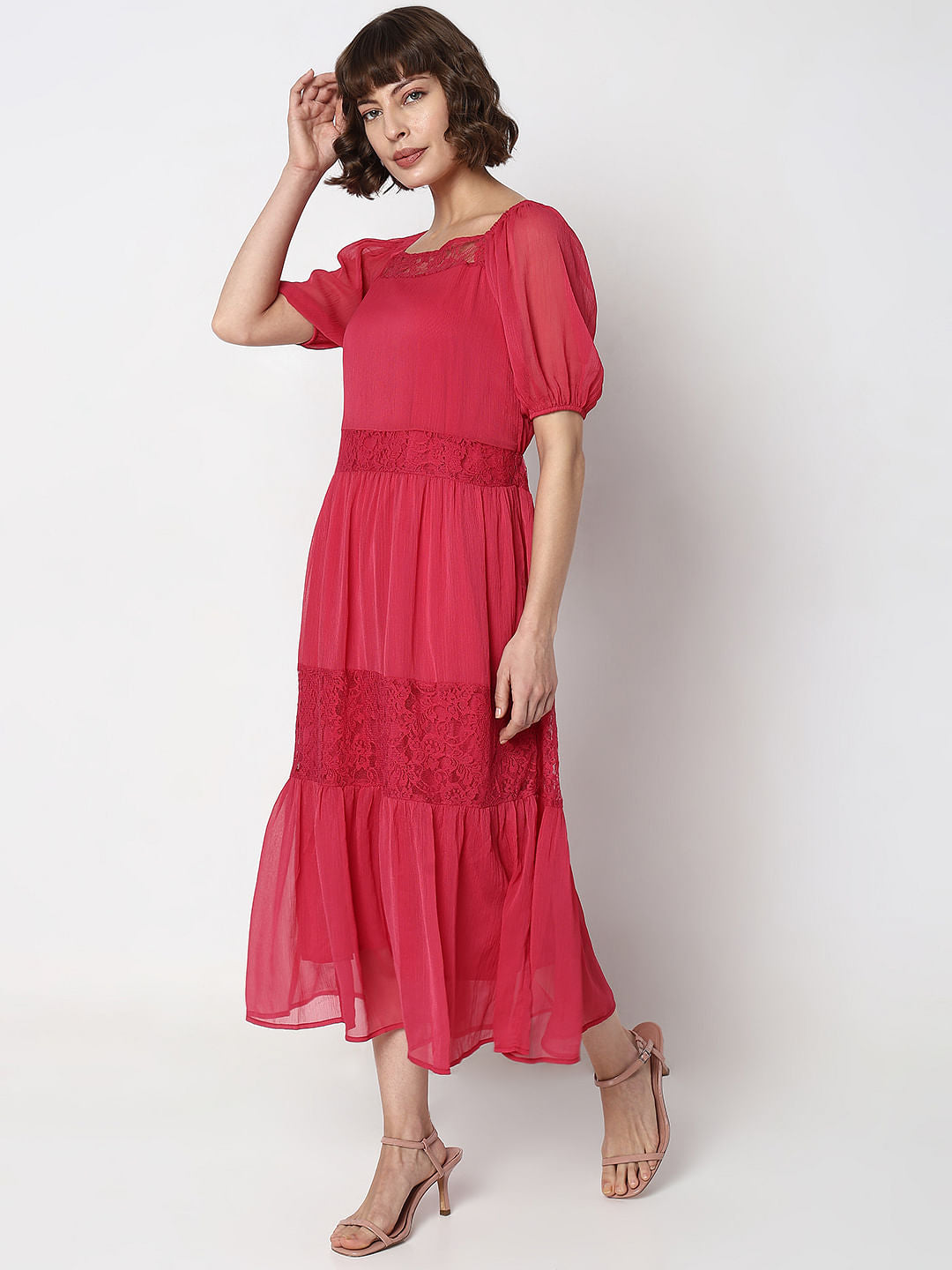 This gorgeous Vero Moda dress is perfect for any occasion. Featuring a square neckline with lace detailing, combined with short sleeves and tiered length, this regular fit maxi dress is sure to be a hit. Style it up with some statement earrings and a clutch bag for an elegant evening look or keep it casual by pairing it with some sleek white trainers for a fun daytime look.