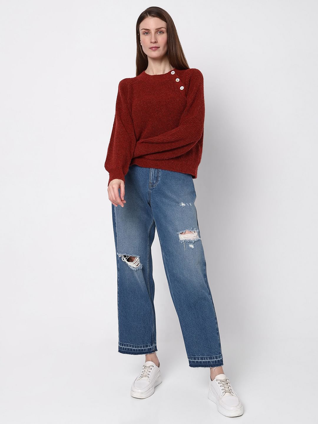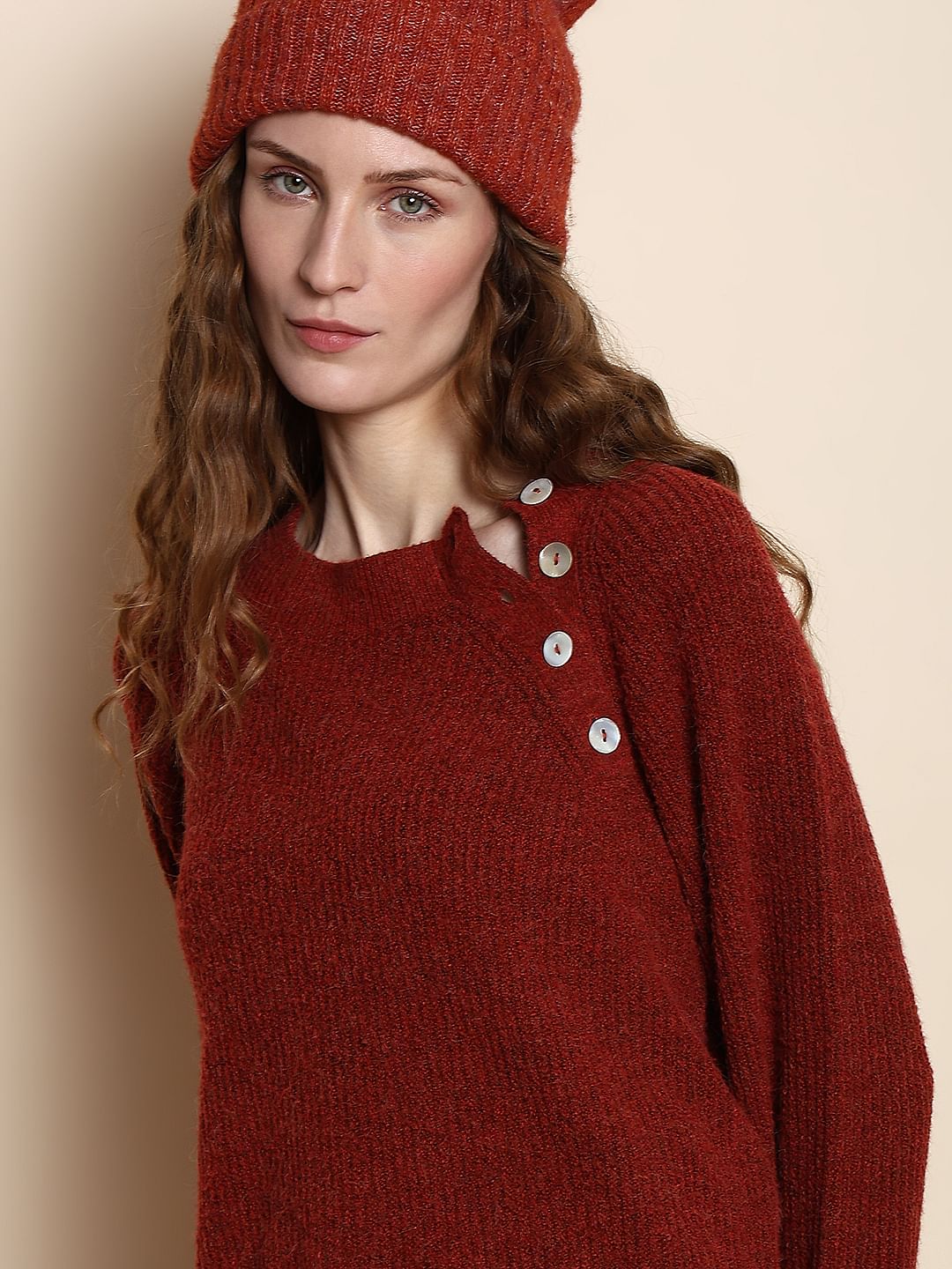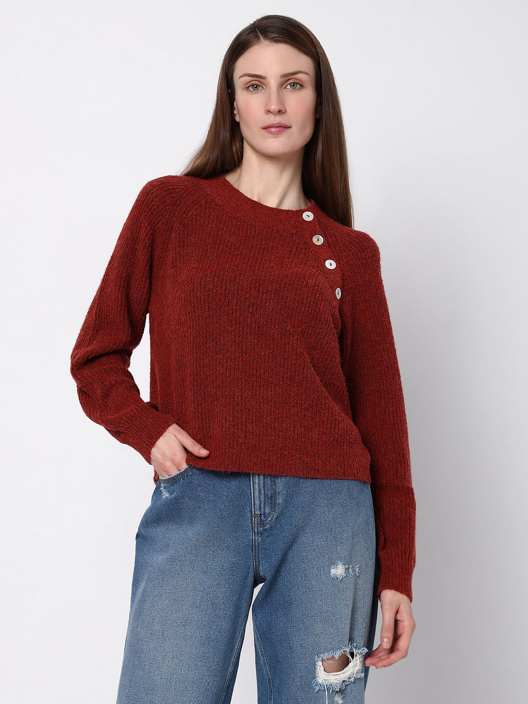 MAROON O-NECK BUTTON DETAIL PULLOVER