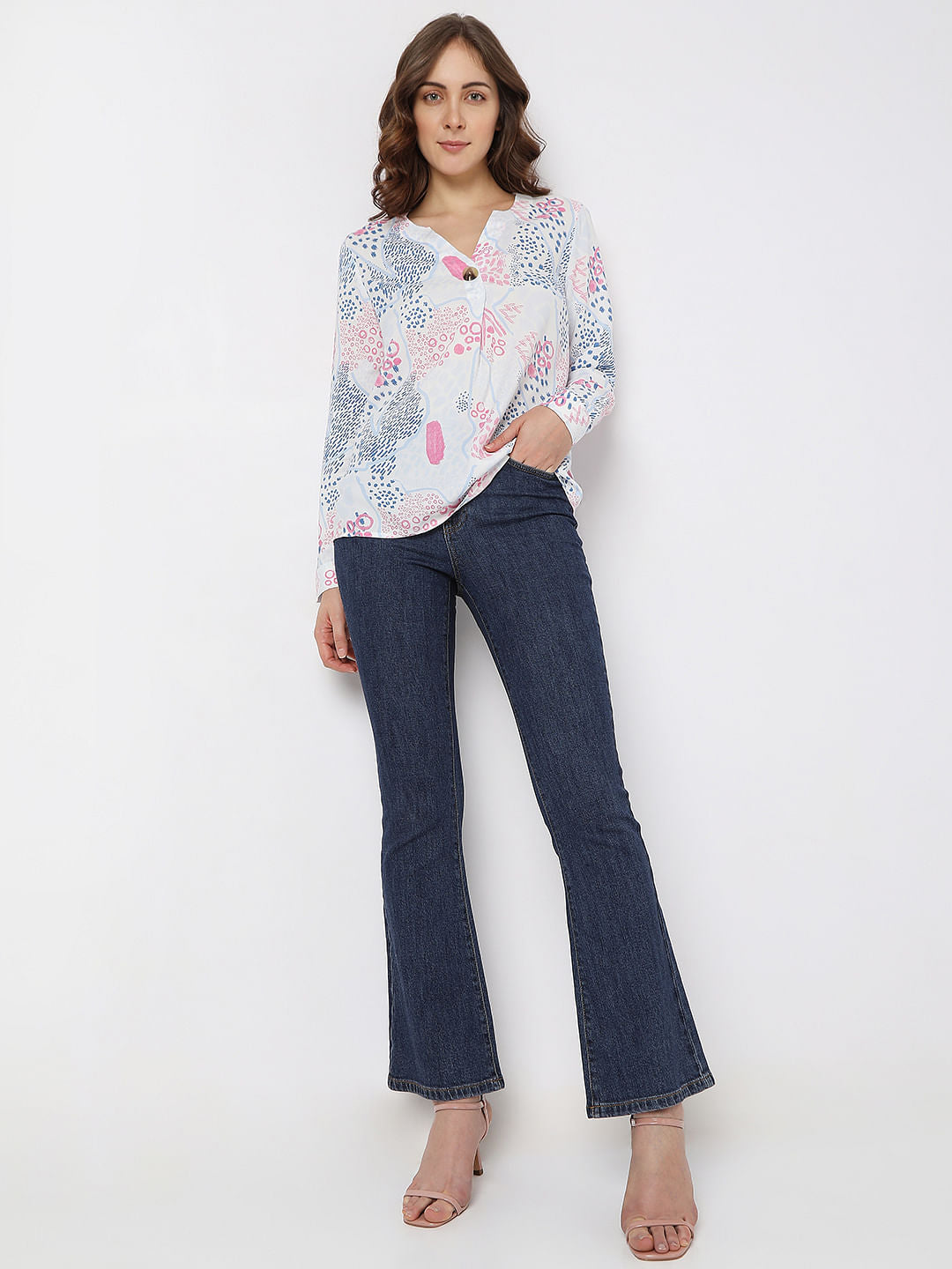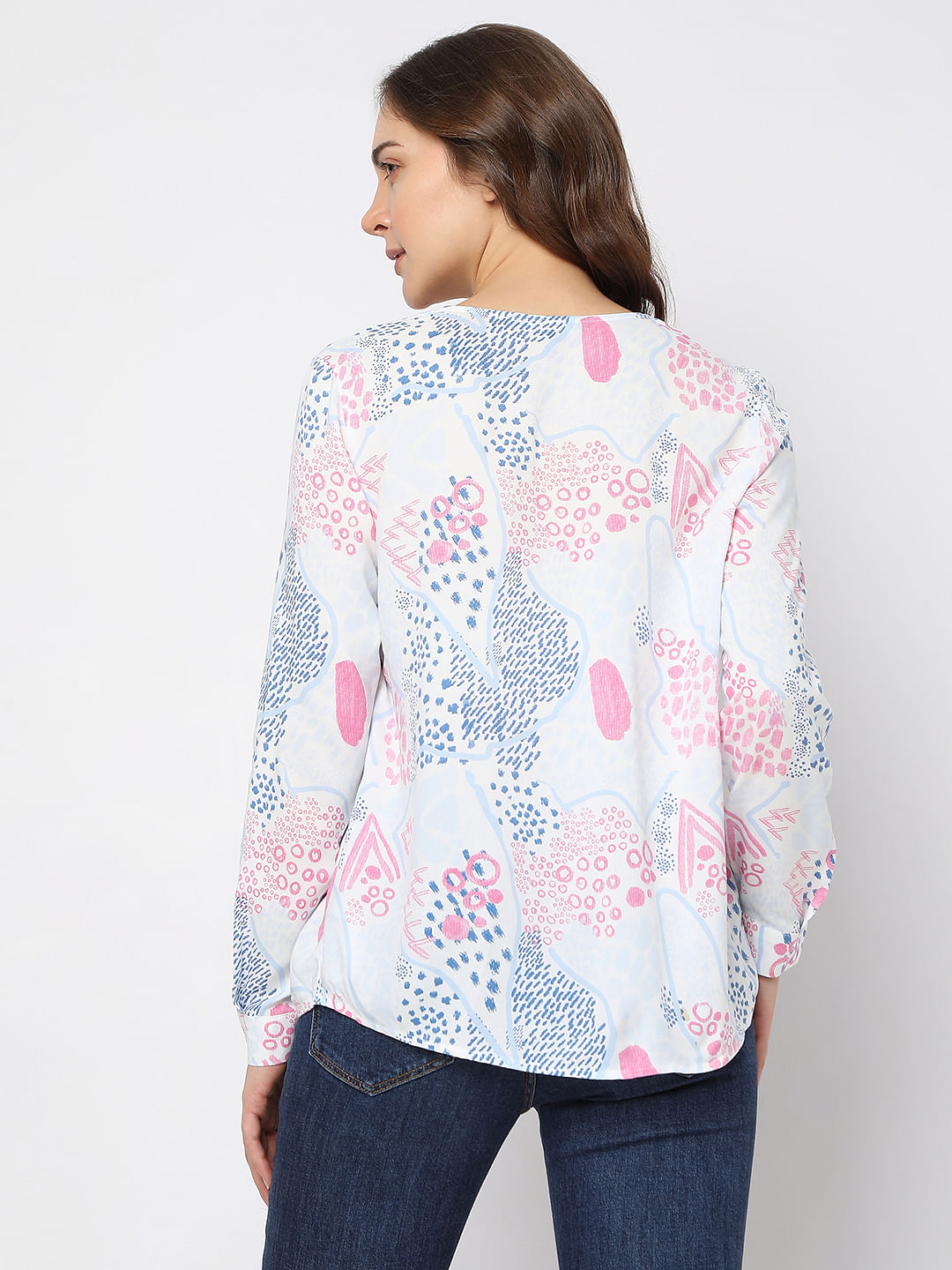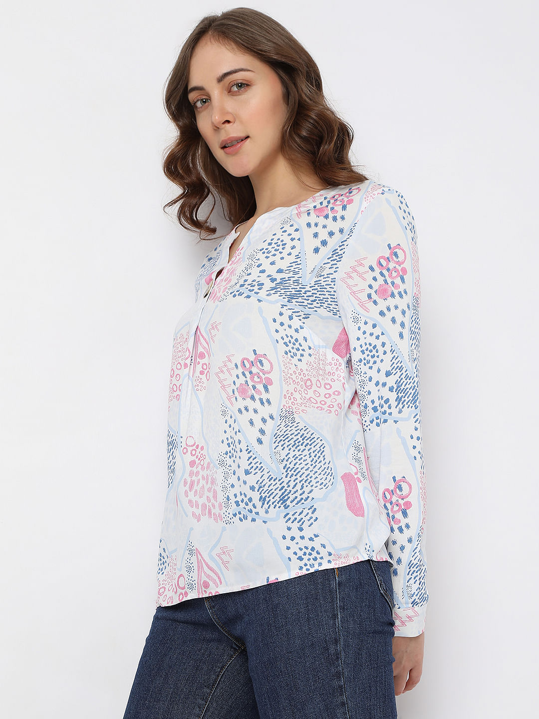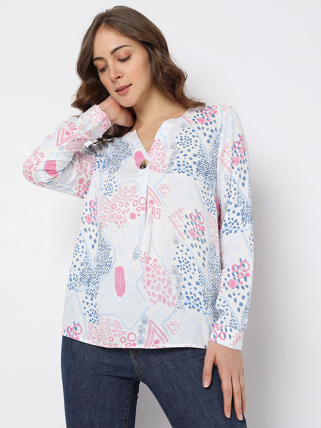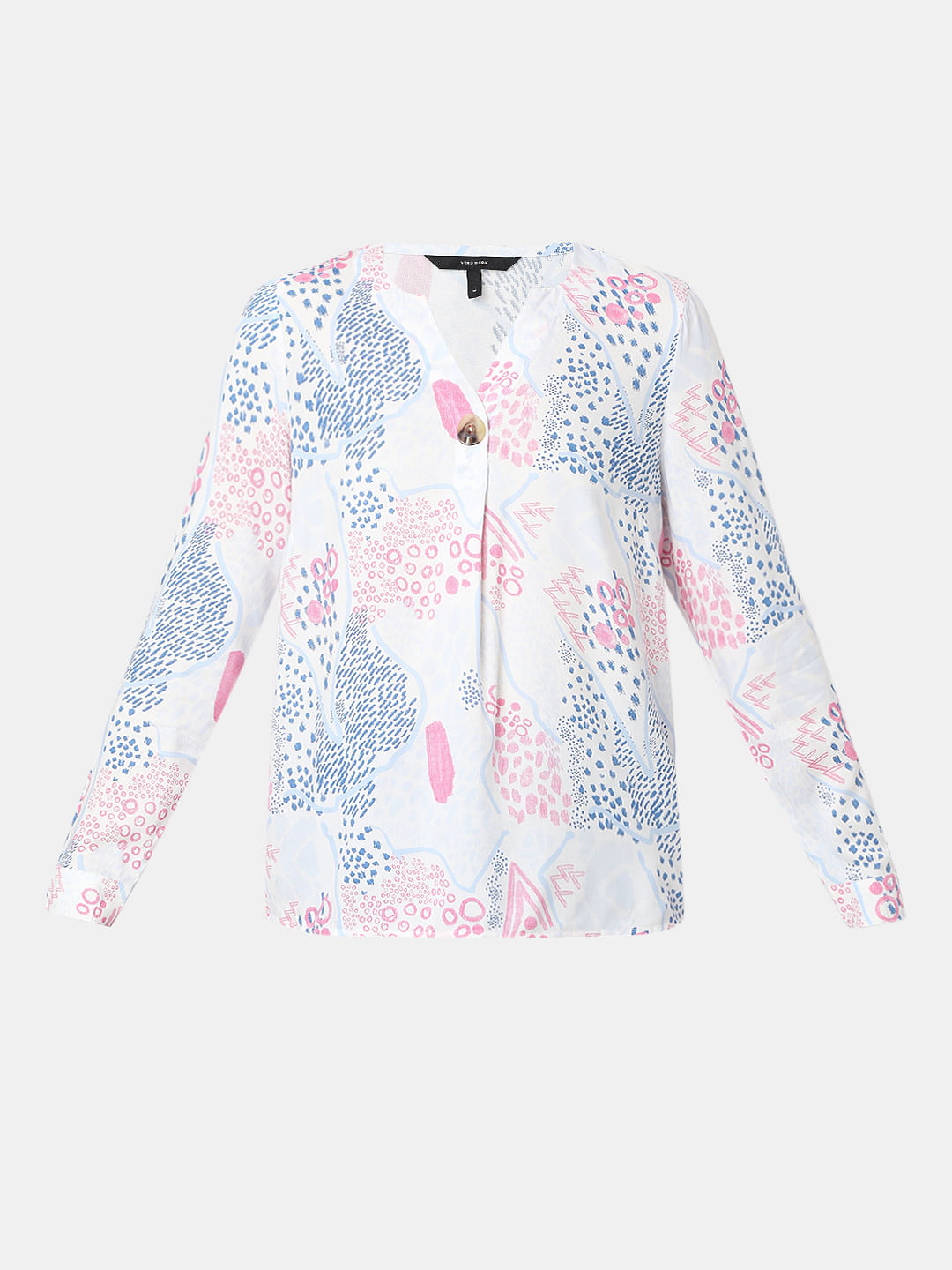 Look fresh and chic in this Vero Moda pink All-Over Printed Top. Crafted from a lightweight fabric, this regular-fit top features a round neck with notch at centre which is fastened with a button. It has long sleeves with cuffs and the top hem falls slightly below the hips. Wear it with a pair of high-waisted jeans and court shoes for an elevated daytime look.