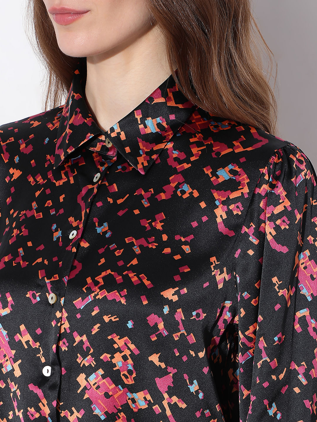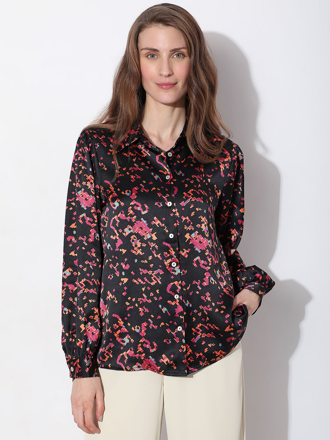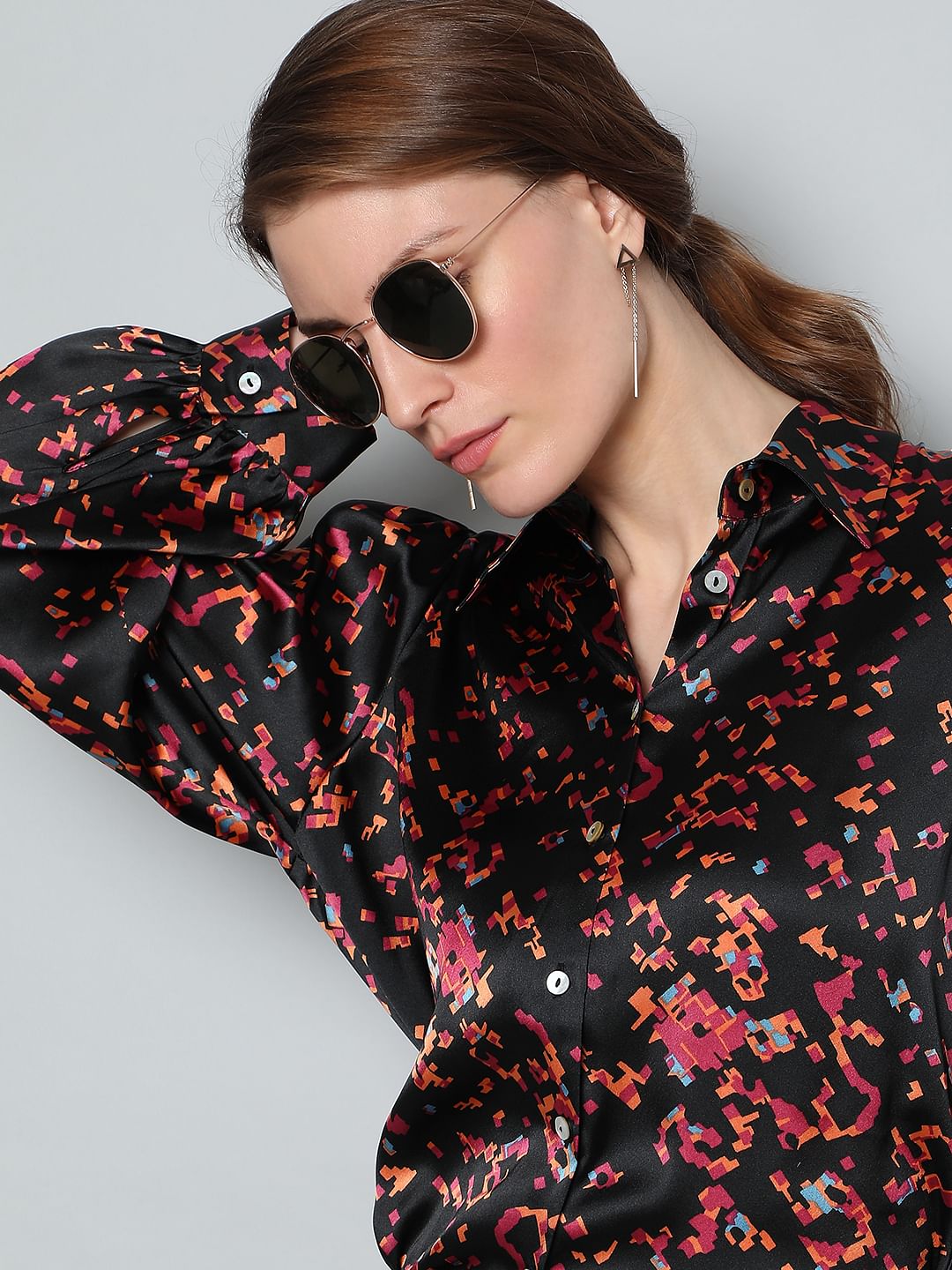 Women's black abstract print full sleeves shirt. Style it with wide-leg jeans for a casual look or trousers for a more formal attire.