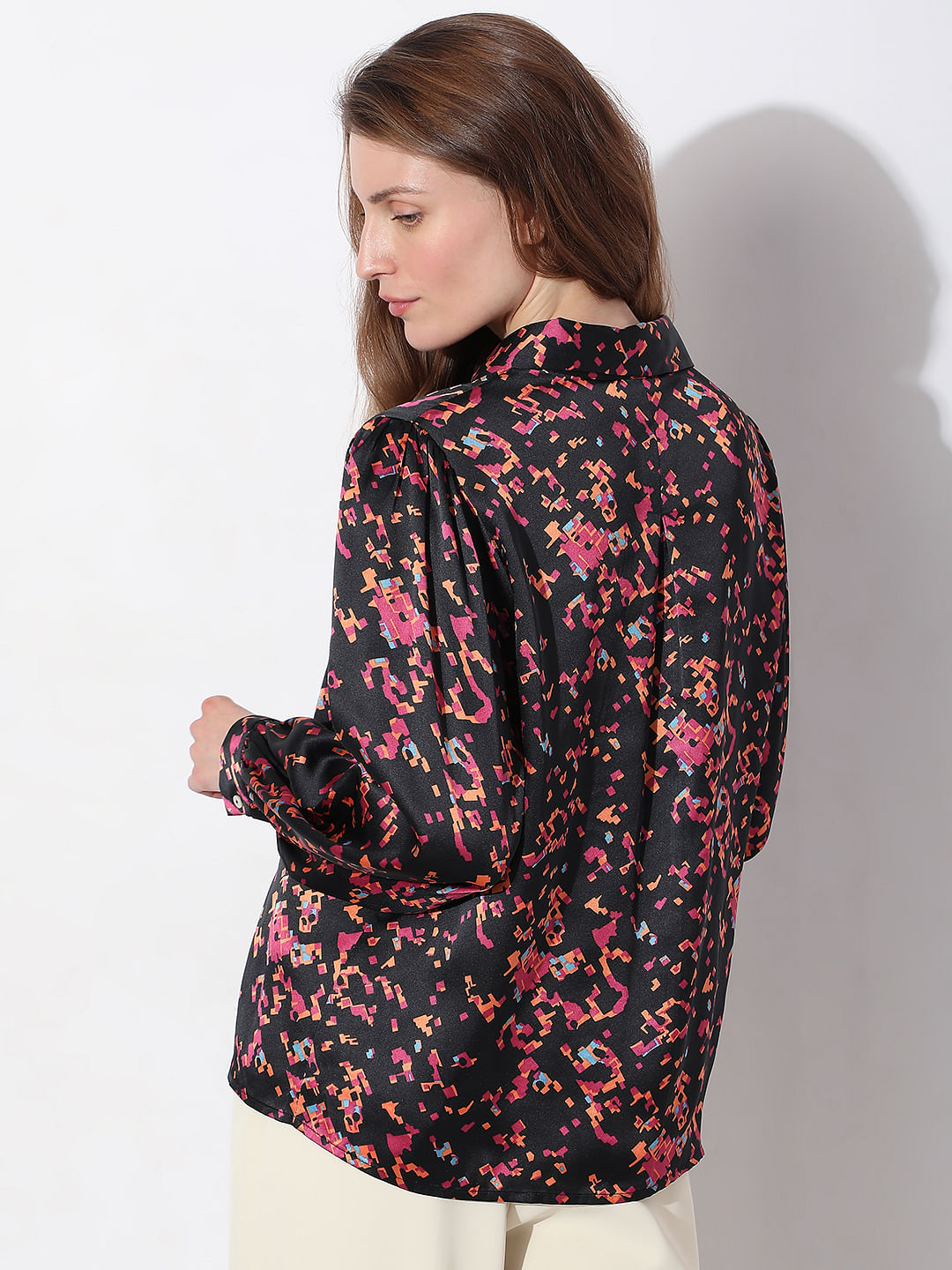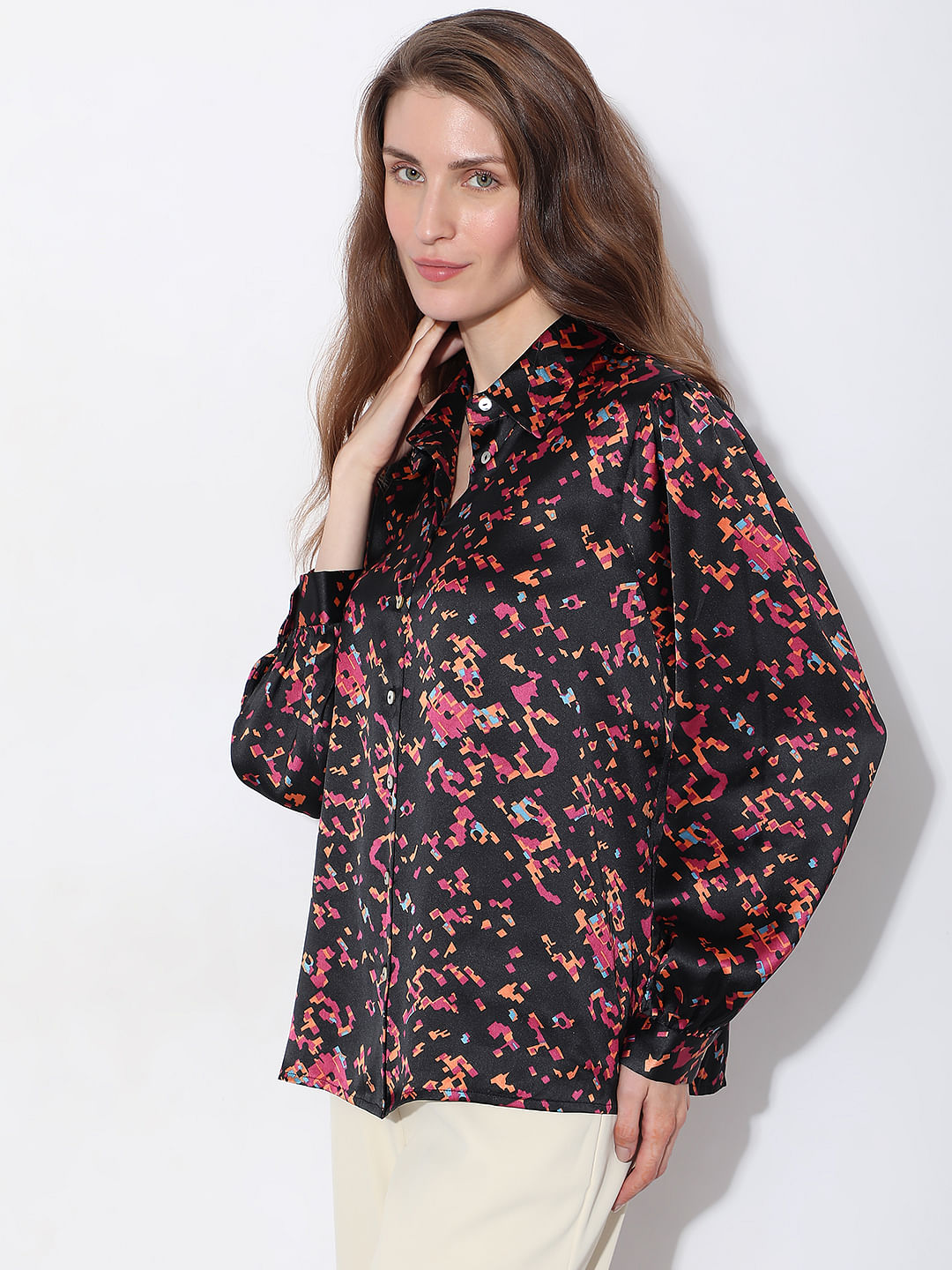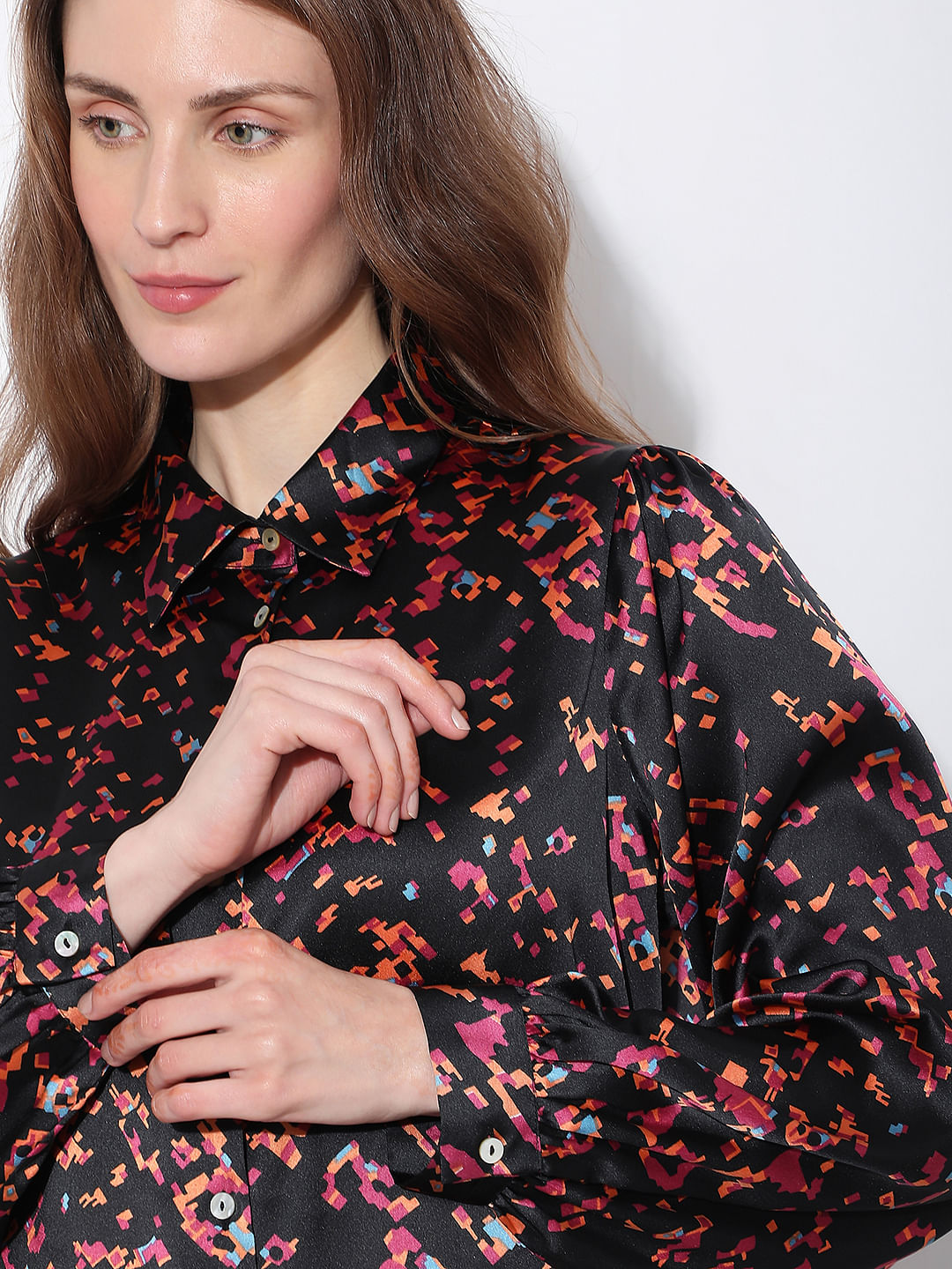 Women's black abstract print full sleeves shirt. Style it with wide-leg jeans for a casual look or trousers for a more formal attire.