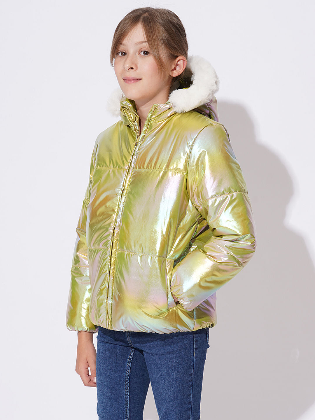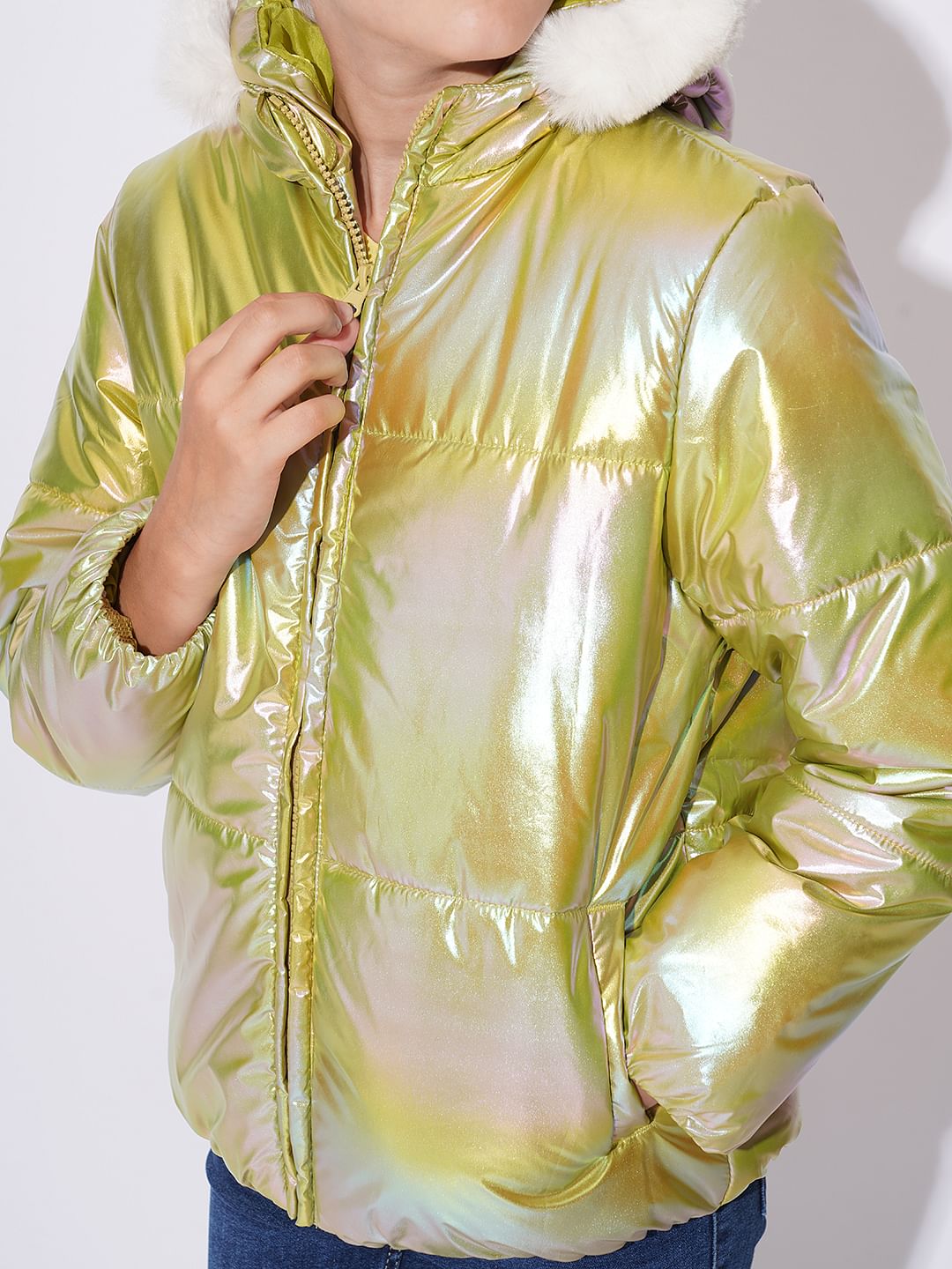 GIRLS GREEN HOLOGRAPHIC PUFFER JACKET