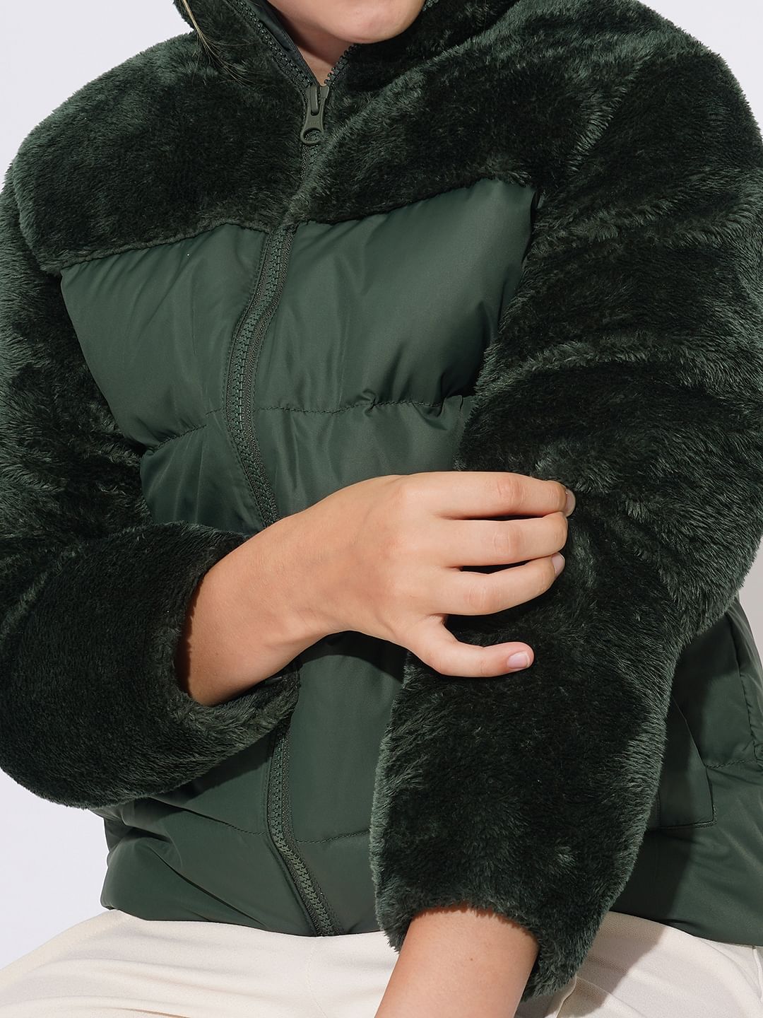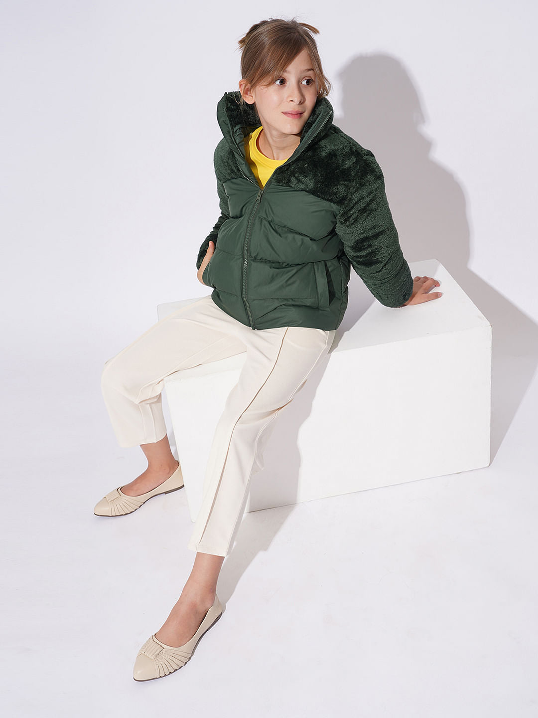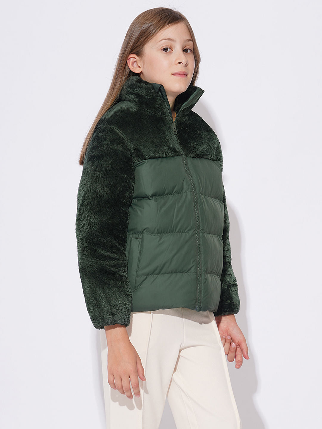 GIRLS DARK GREEN PUFFER CORDUROY JACKET