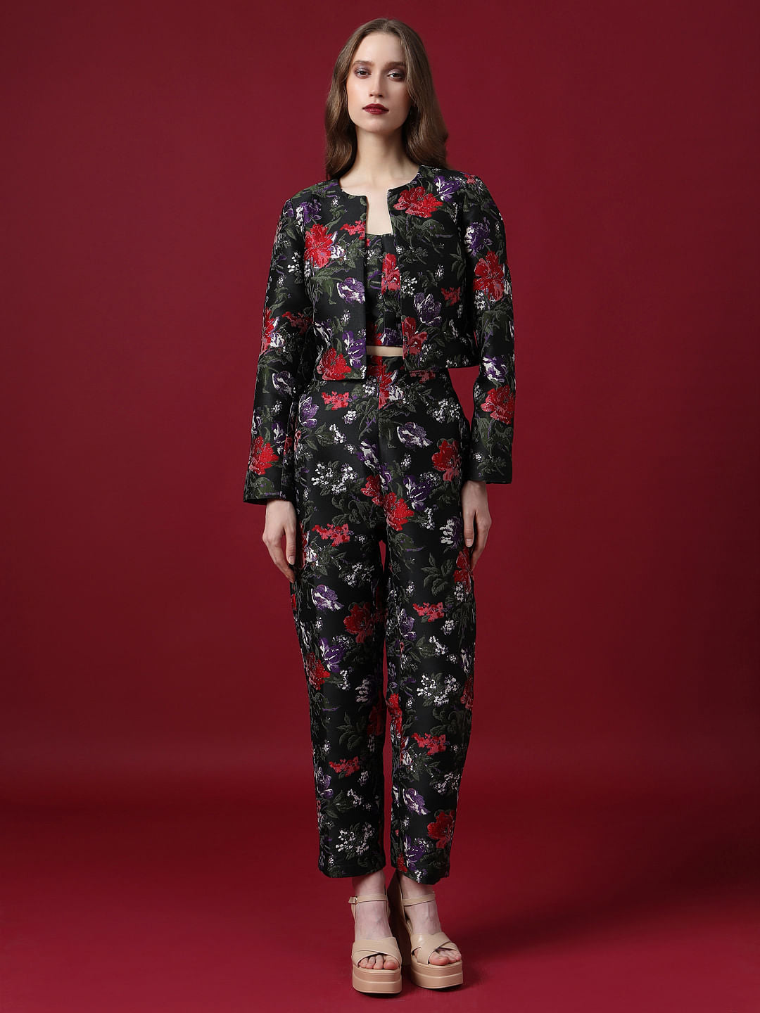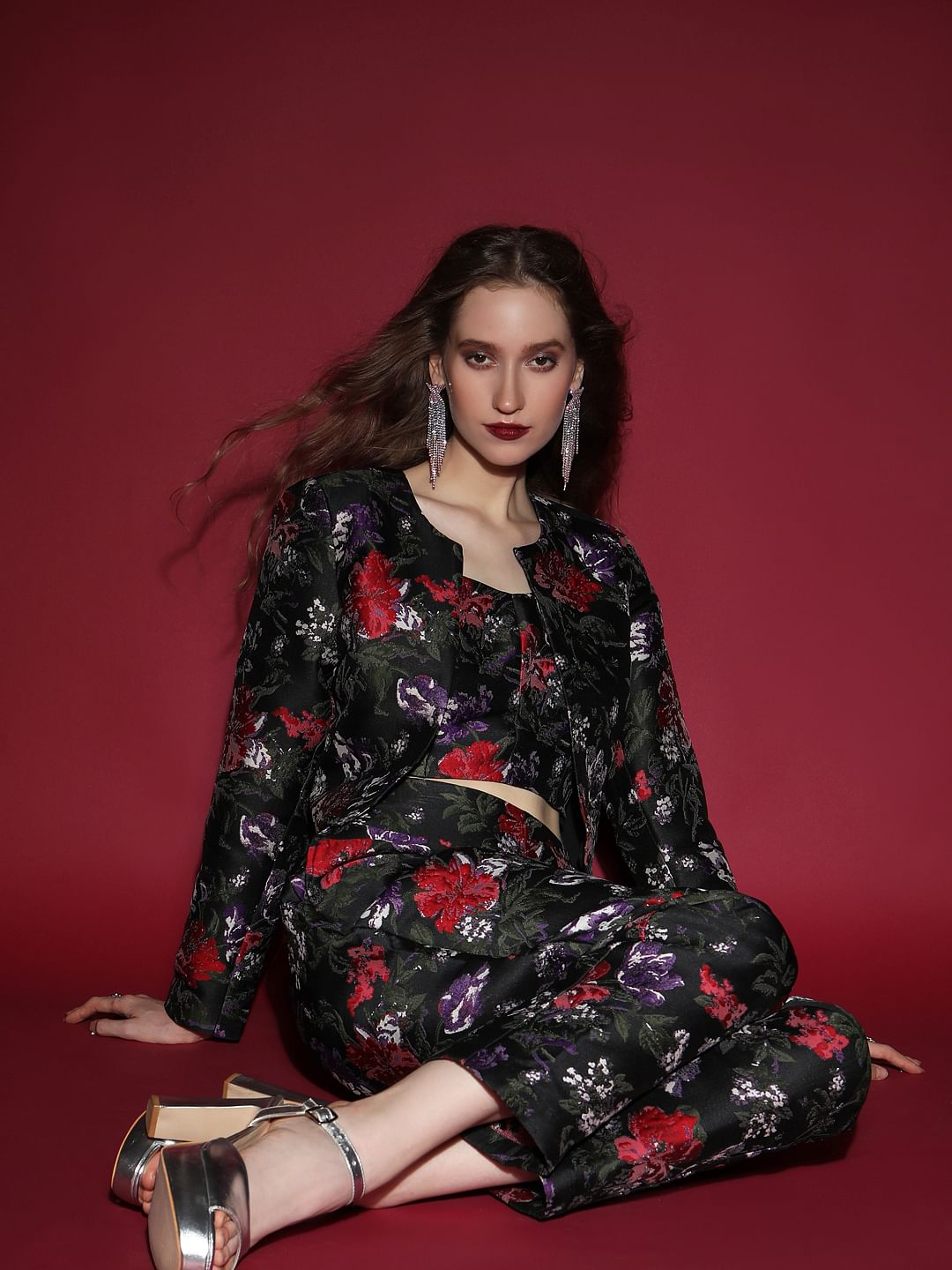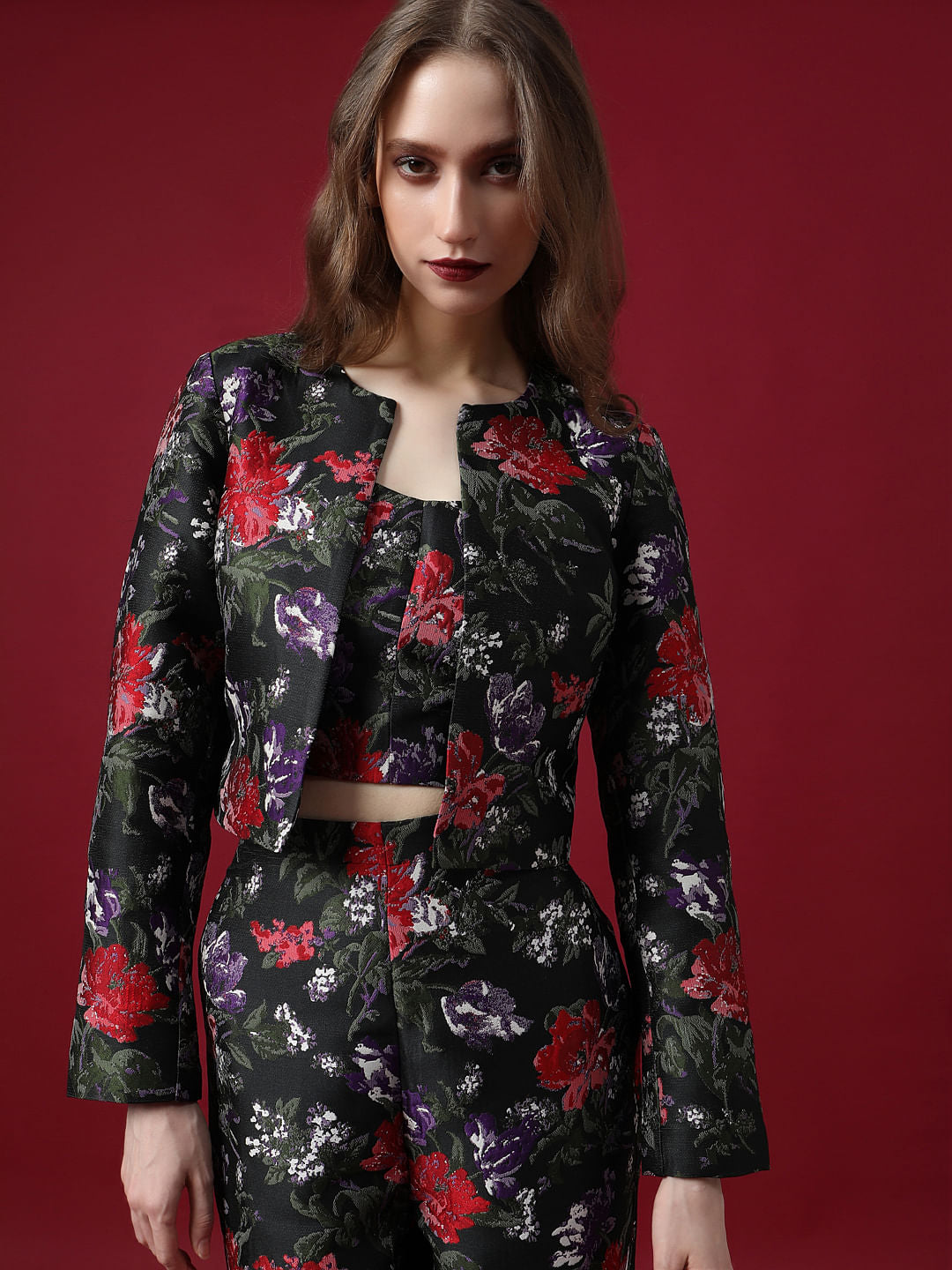 MARQUEE BLACK FLORAL JACQUARD CO-ORD SET JACKET