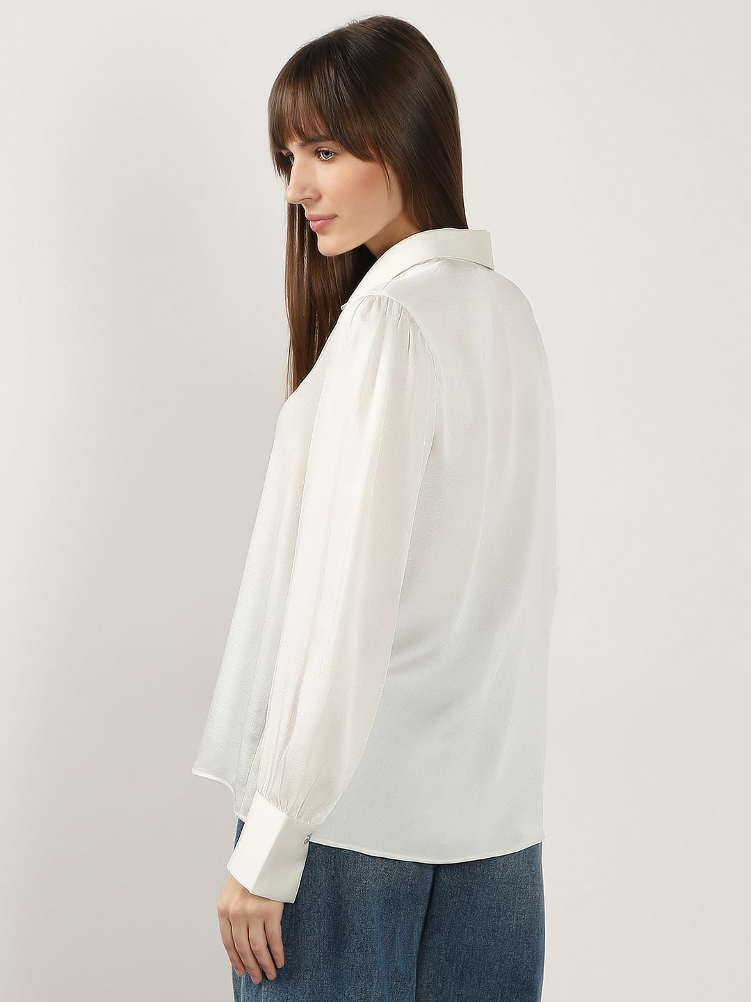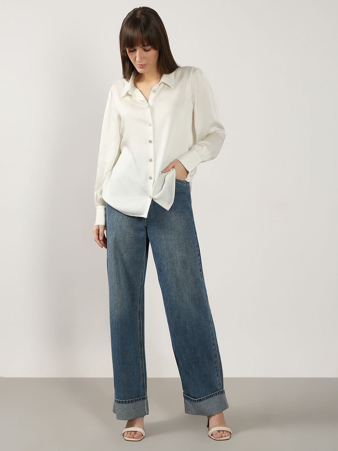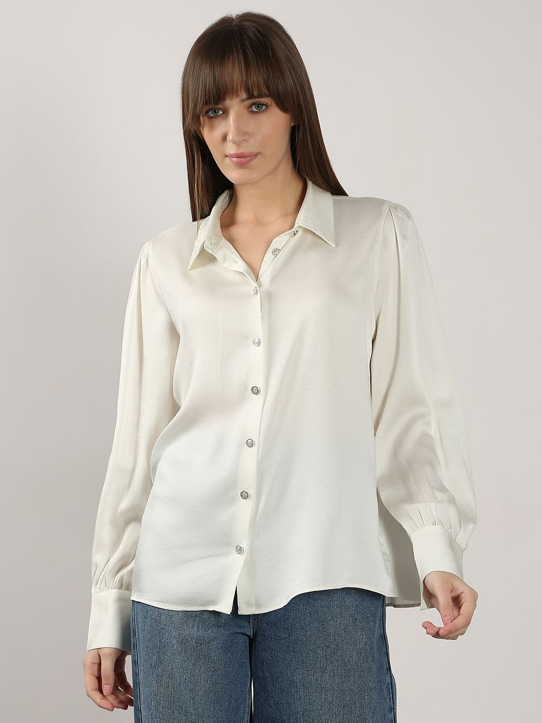Crisp, chic, and effortlessly stylish—this white shirt from VERO MODA is a wardrobe essential. Featuring a classic collar, front placket with metal buttons, and long sleeves with gathered cuffs, it’s designed in a regular fit that falls elegantly over the hips. Perfect for polished or laid-back looks alike.