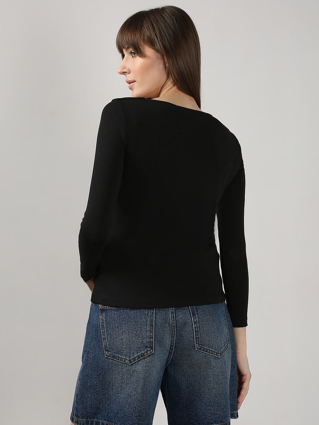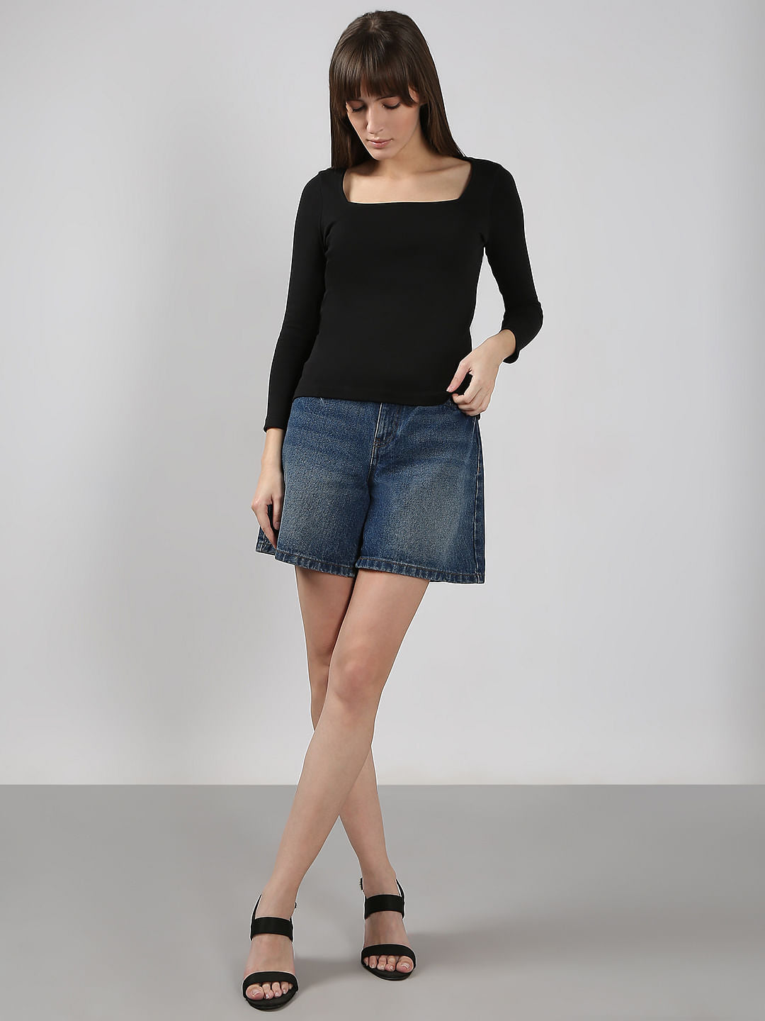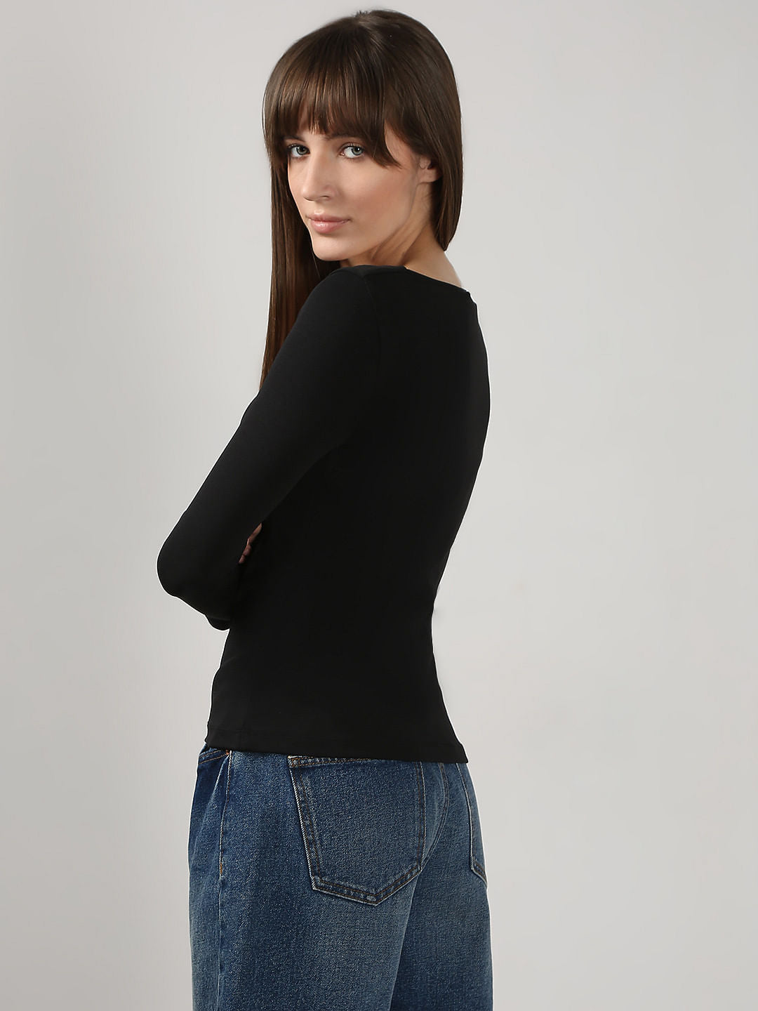 This fitted top features a flattering square neck and long, full sleeves, offering a timeless silhouette that pairs effortlessly with any wardrobe. Perfect for layering or wearing on its own, it combines elegance with a modern edge.
