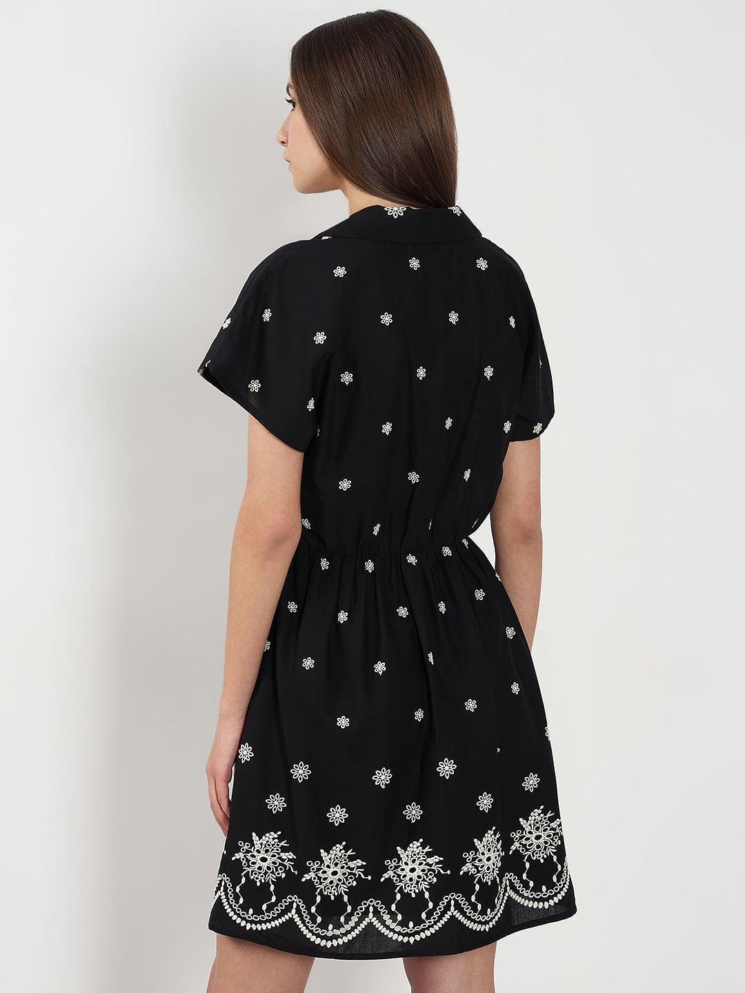 BLACK EMBROIDERED SHORT DRESS
